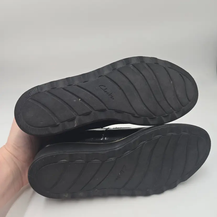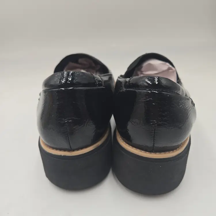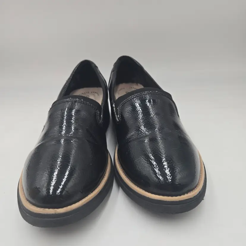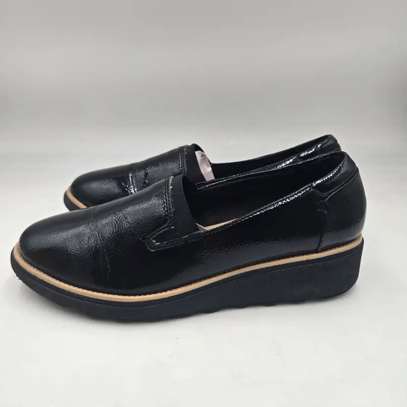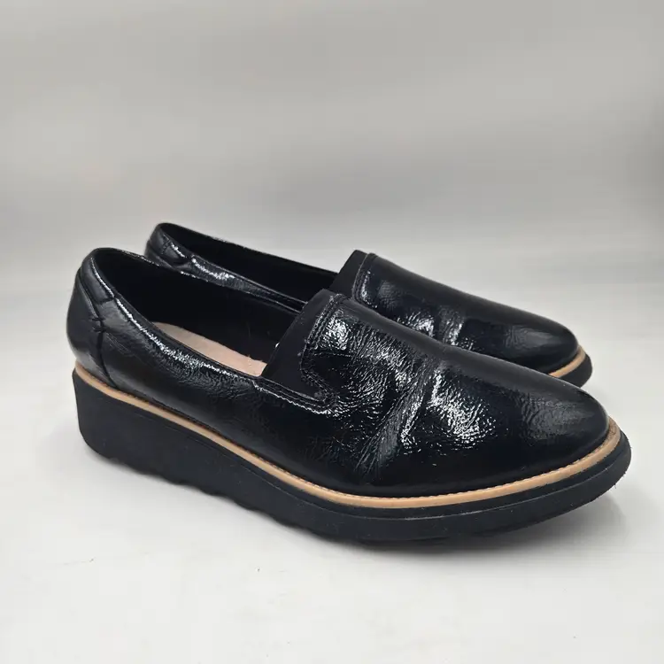 Clarks Sharon Dolly Black Patent Textured Leather Slip On Sz 9 W Preppy Academia