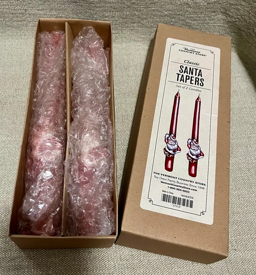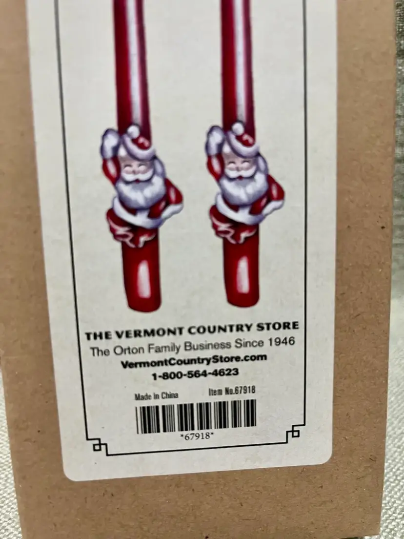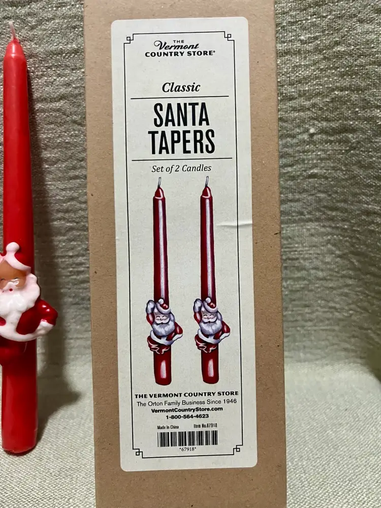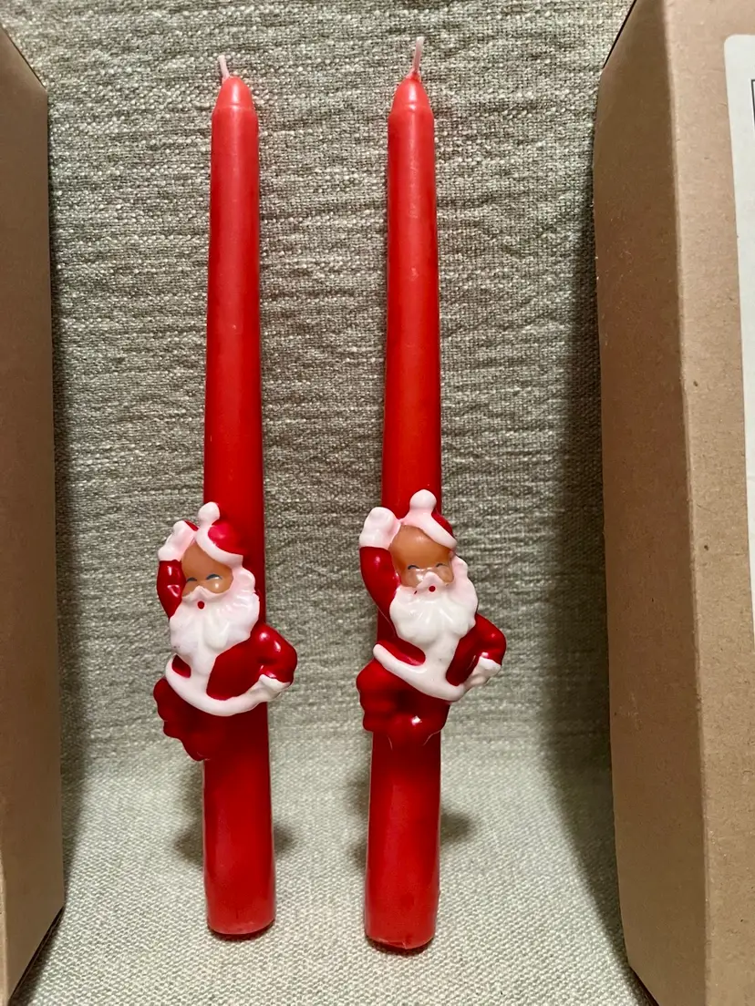 The Classic Santa # 67918 Red 10” Tall Taper Candles by The Vermont Store are a festive addition to your holiday decor. These medium-sized taper candles feature a 3D Santa Claus design in red wax, adding a decorative touch to your seasonal celebrations. The set of two candles comes boxed and ready to be displayed, creating a warm and inviting atmosphere for Christmas. Made in China, these candles are perfect for adults and older teens looking to enhance their holiday traditions with a touch of seasonal charm.