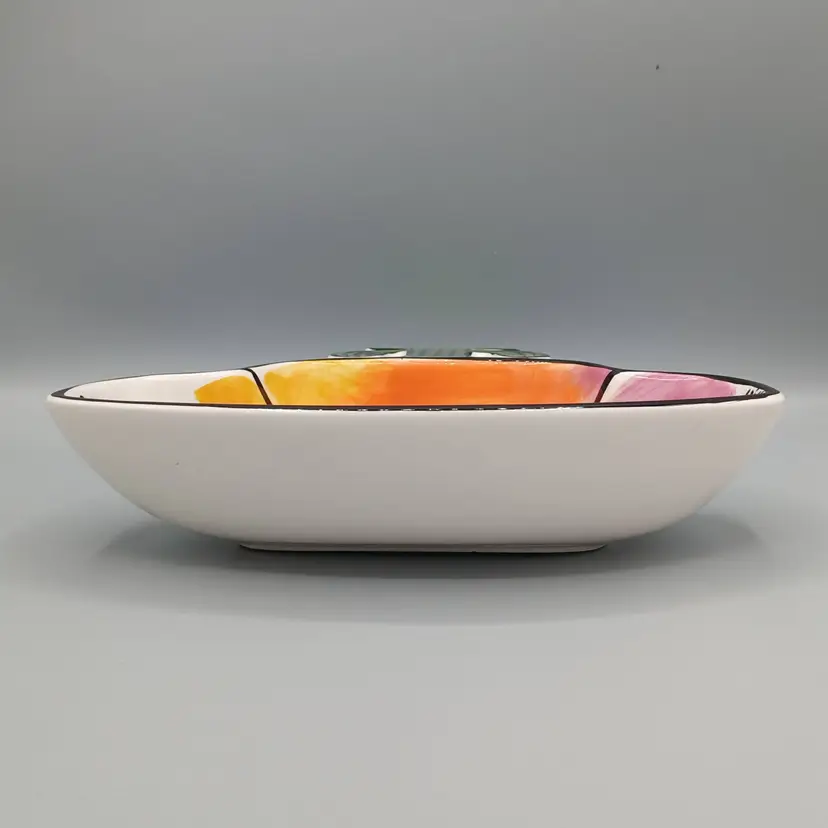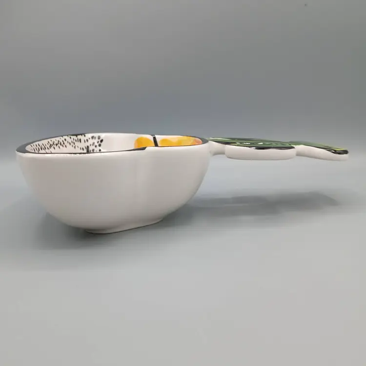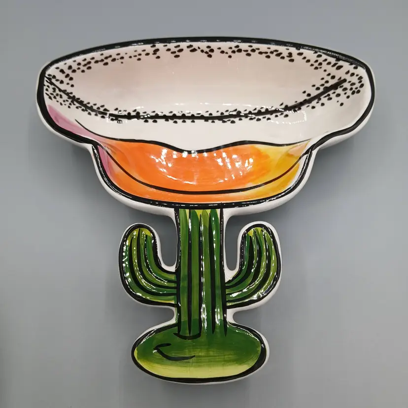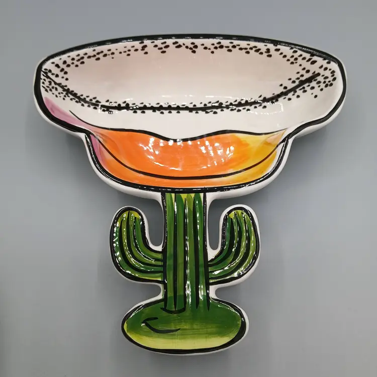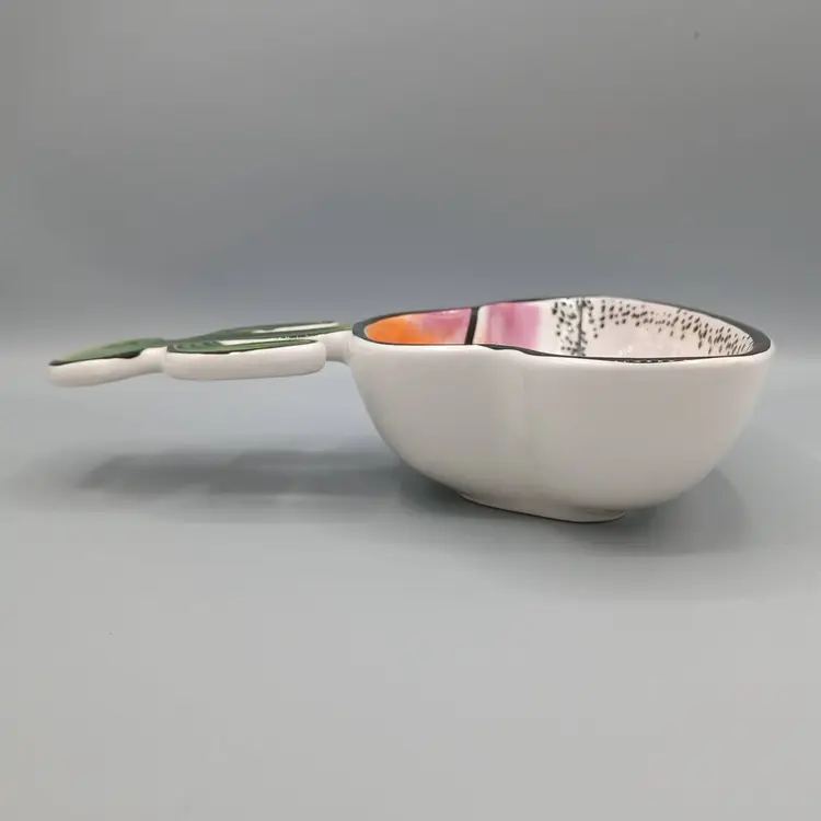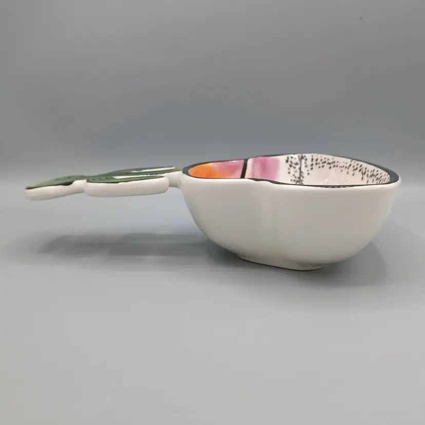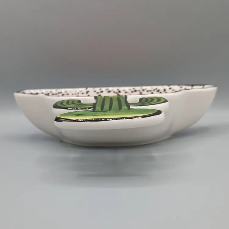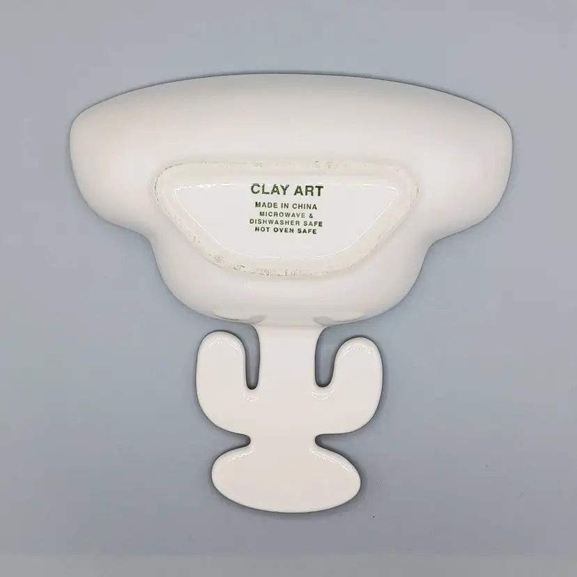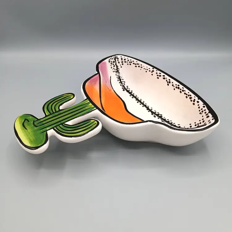 No damage. Fun ceramic serving dish by Clay Art, perfect for salsa or sides. Perfect bar accessory! 7.5" W x 7.5" T x 2" D