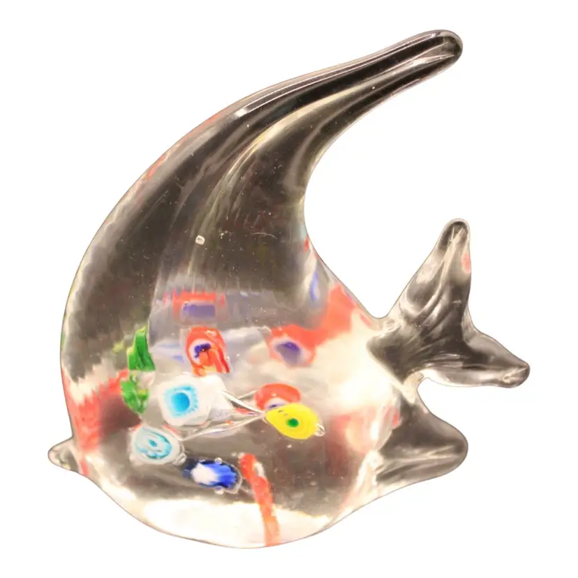 Clear Art Glass Angel Fish Millefiori 4 1/4” Tall. It measures 4 1/2” x 1 1/2”. No chips or cracks.