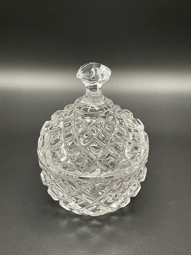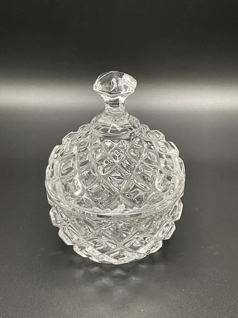 Clear Crystal Diamond Cut Glass Candy Dish Trinket Holder.
