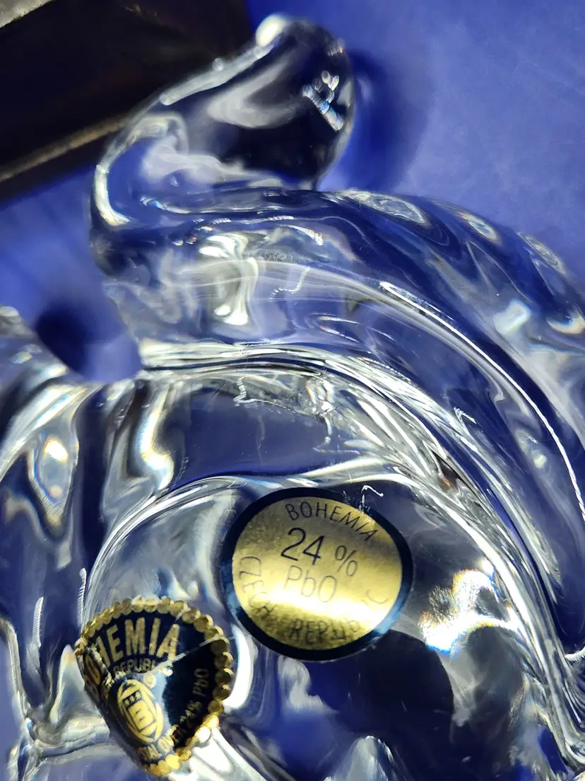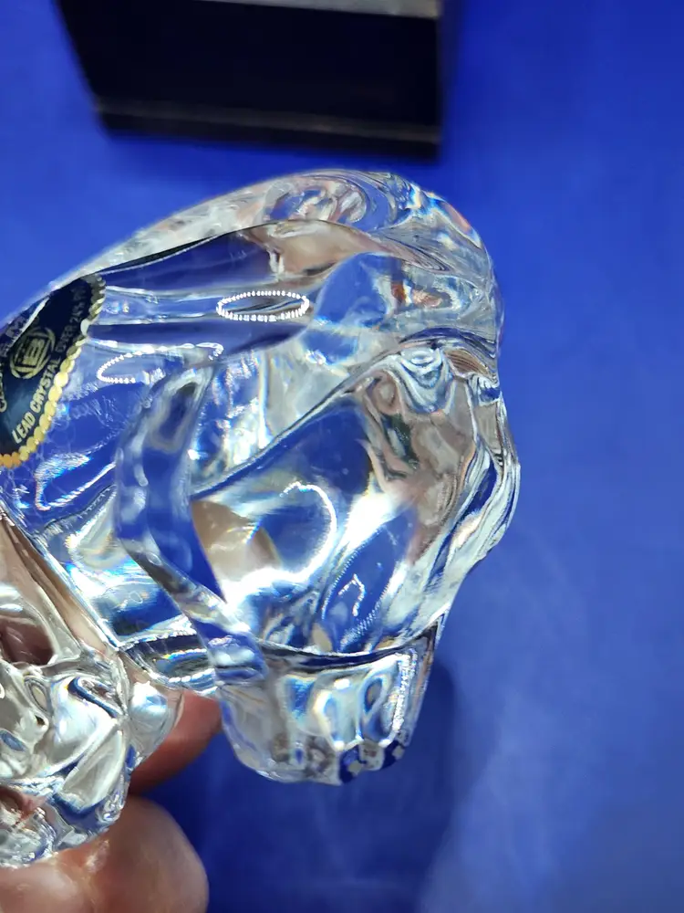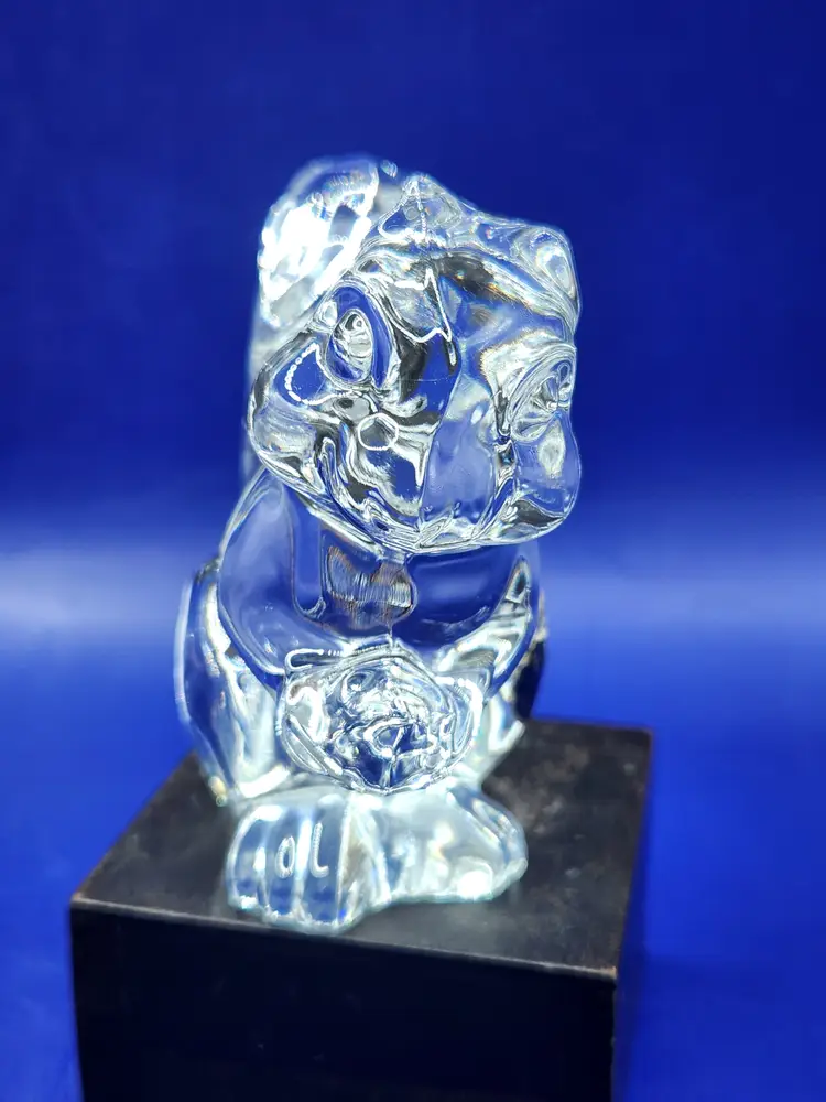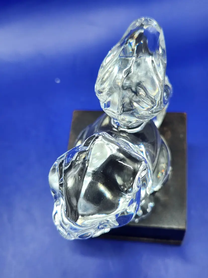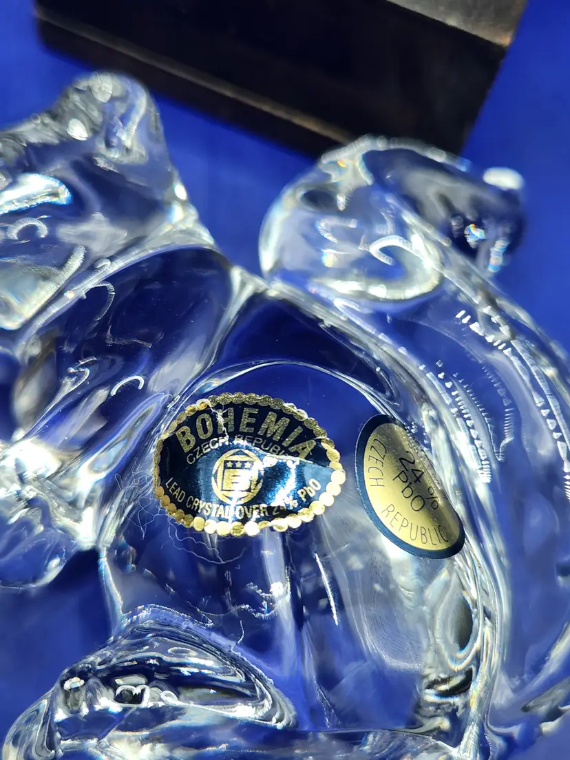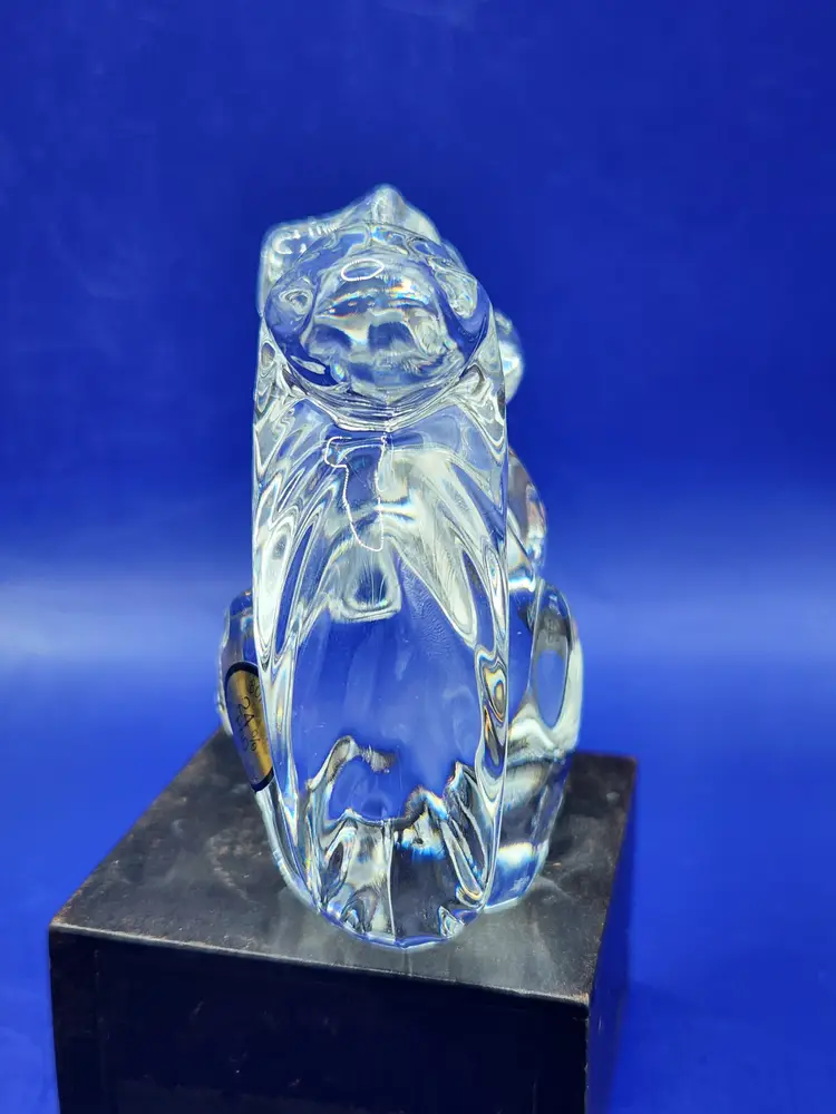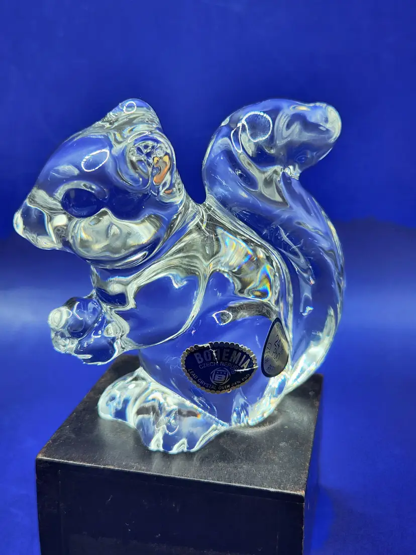 Clear Glass Squirrel with Nut Paperweight Bohemia Czech Republic Lead Crystal over 24% PB0 Measures 3 1/4 inches tall by 3 1/4 inches wide No chips or cracks