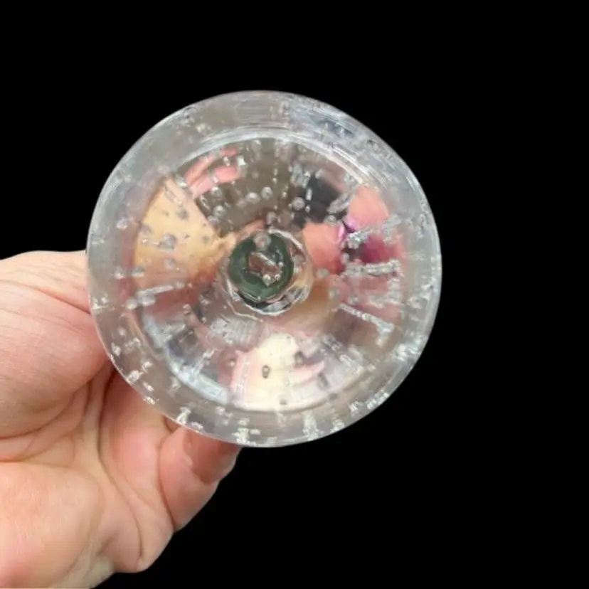 Elegant vintage clear glass bud vase with a unique bubble base. Perfect for displaying single stems or as a minimalist decor piece.