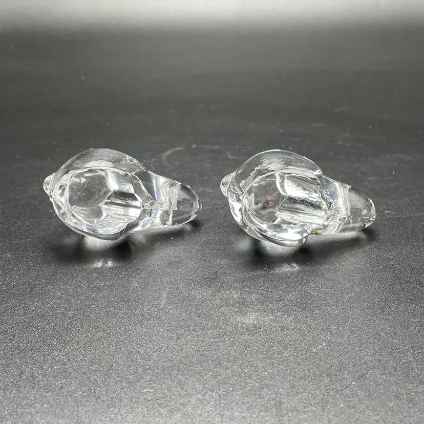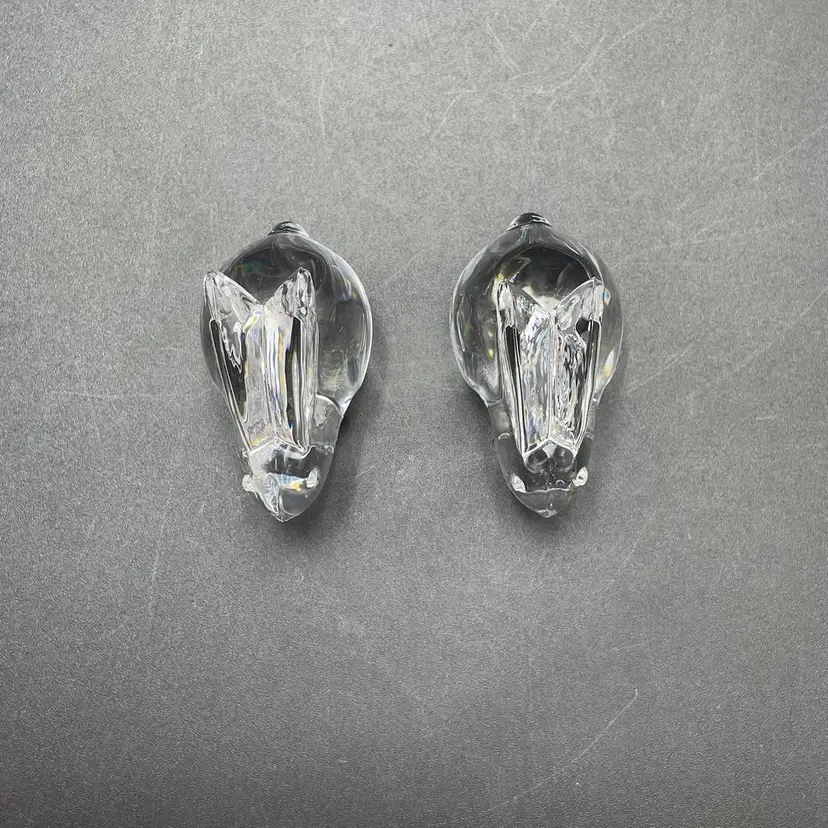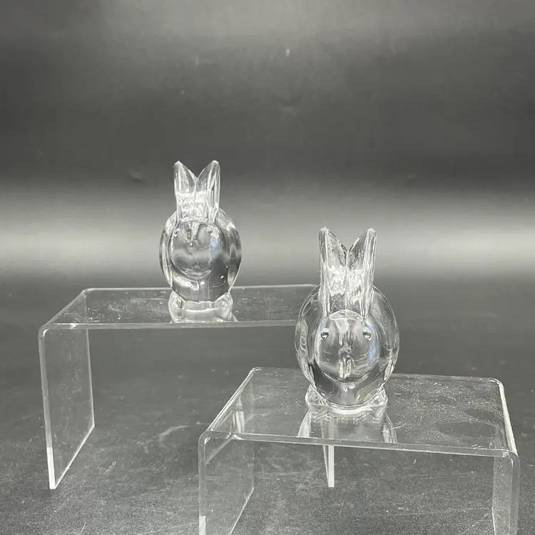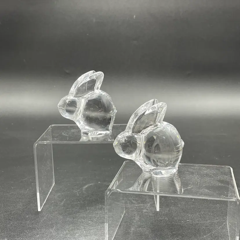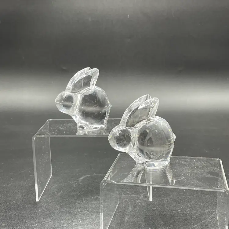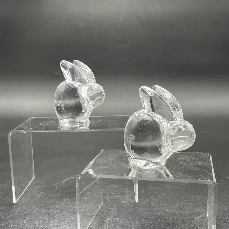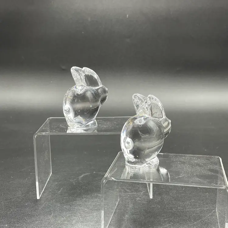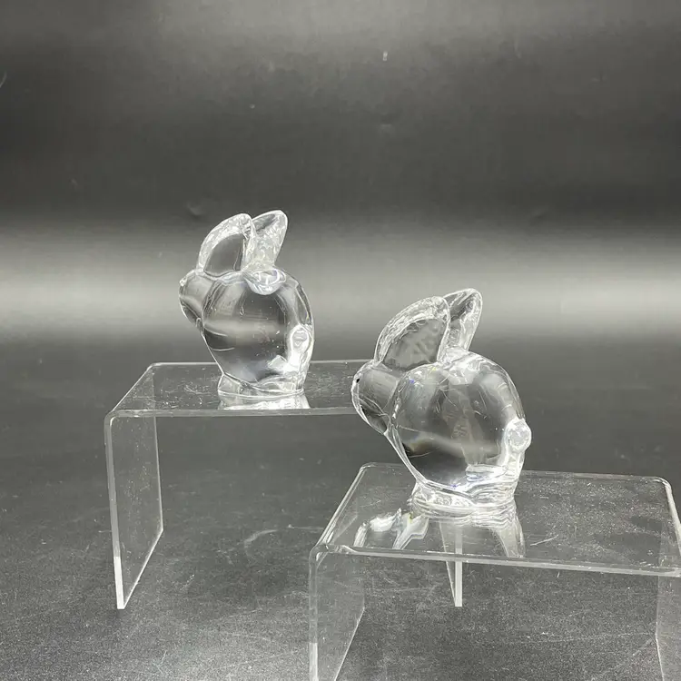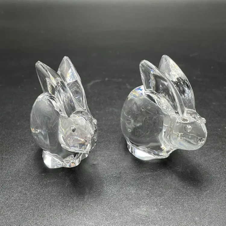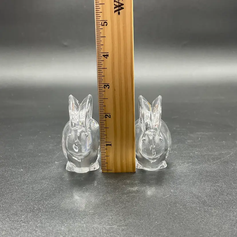 This is a set of 2 clear glass rabbit figurines. Each measure approximately 2.5" tall. No chips or cracks.