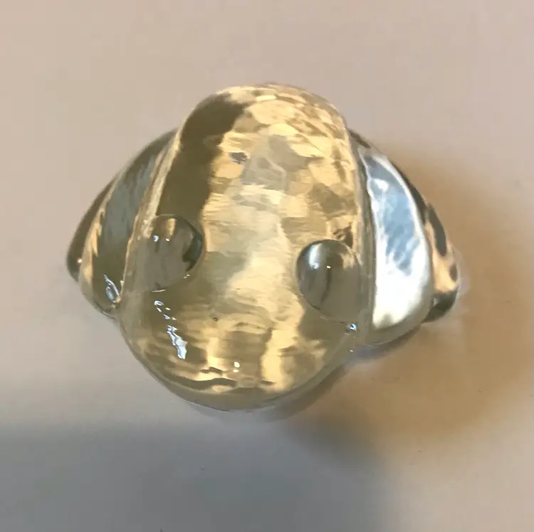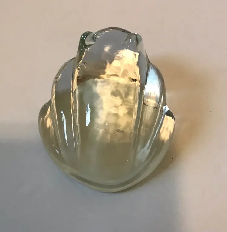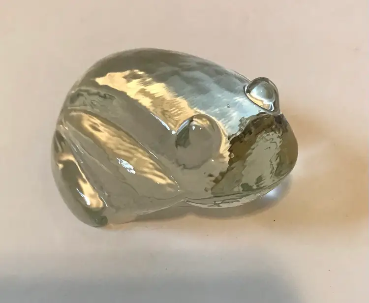 This piece is 3”x3.5”. No marks or signatures but it is the same design frog as baccarat. The glass is so clear it really could be I read there were stickers on the new ones. It was such beautiful glass I could not leave it.