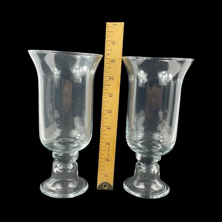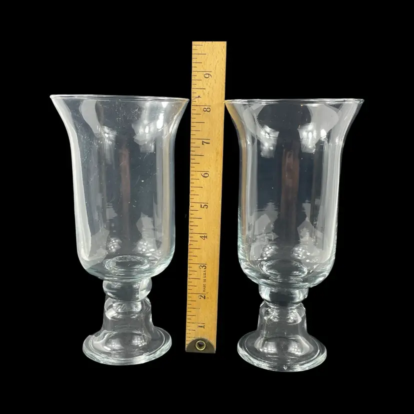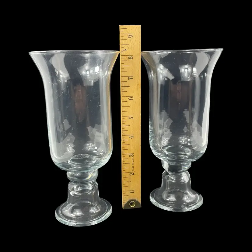Add timeless elegance to your home decor with this pair of clear glass hurricane candle holders, each measuring 8.25 inches tall with a 4-inch opening. These versatile holders are perfect for pillar candles, floral arrangements, or seasonal accents, creating a warm and inviting ambiance in any space. The classic pedestal base adds stability and charm, making them suitable for mantels, dining tables, or centerpieces. A stylish addition to both traditional and modern decor styles, these glass hurricanes are as functional as they are beautiful.