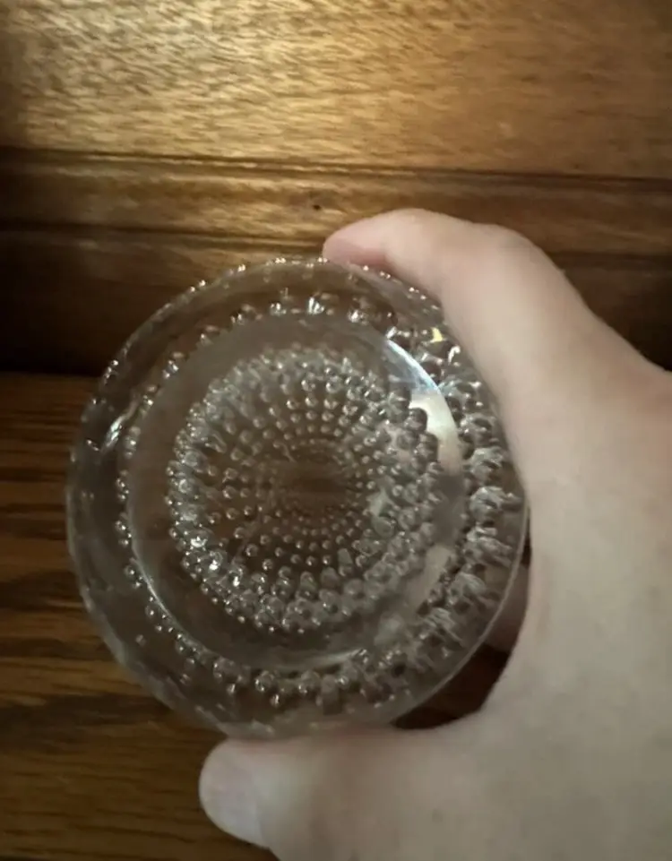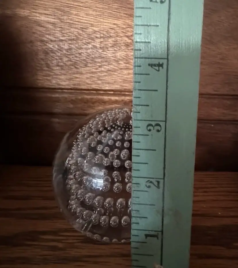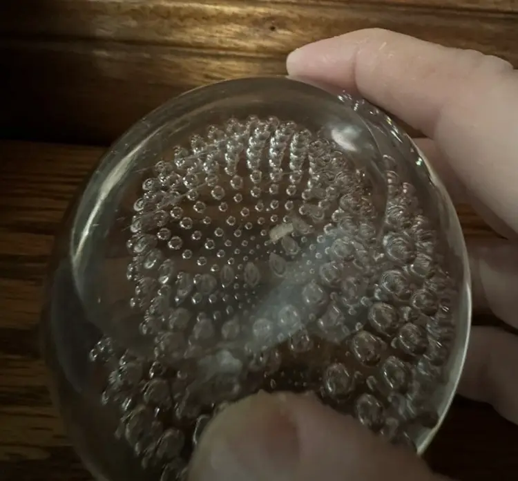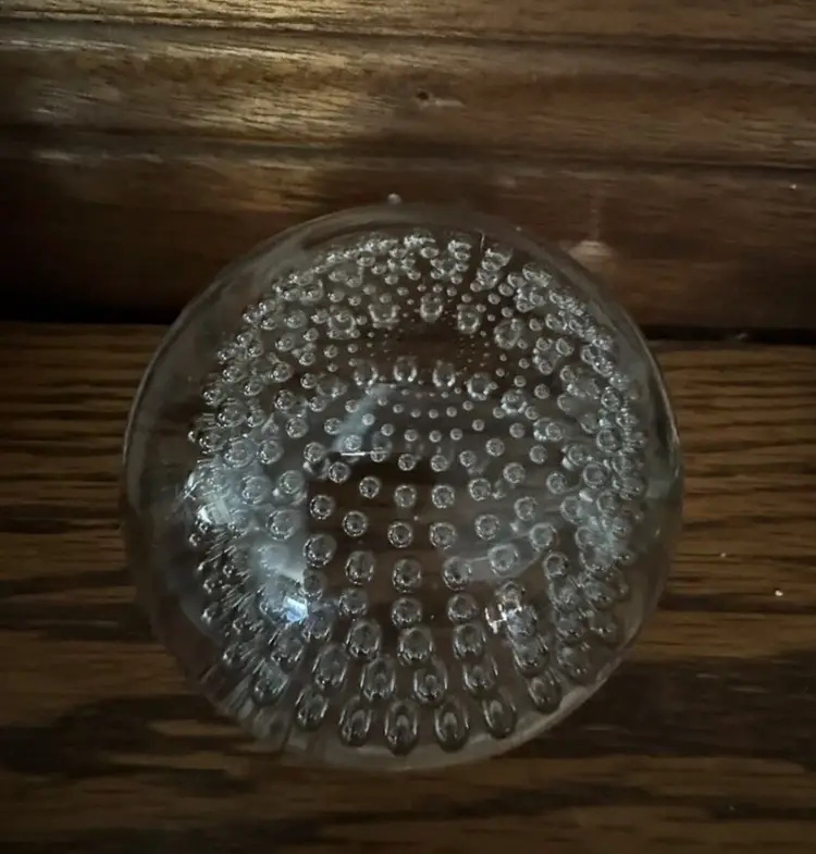 This stunning paperweight is a must-have for any collector. Crafted from clear glass, it features a mesmerizing optical illusion that will leave you captivated. The intricate bubbles and uranium glass add a touch of elegance to this unique piece, making it a true work of art.