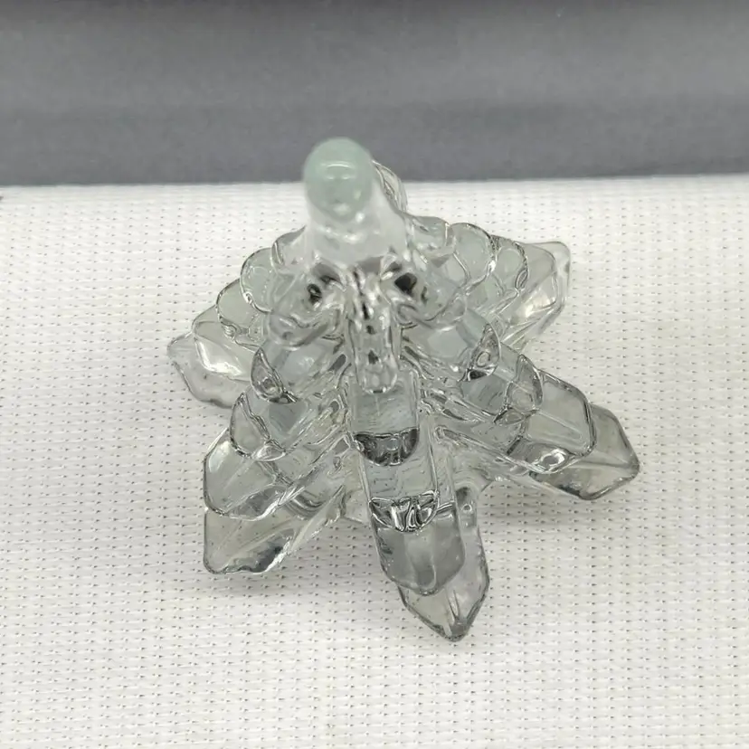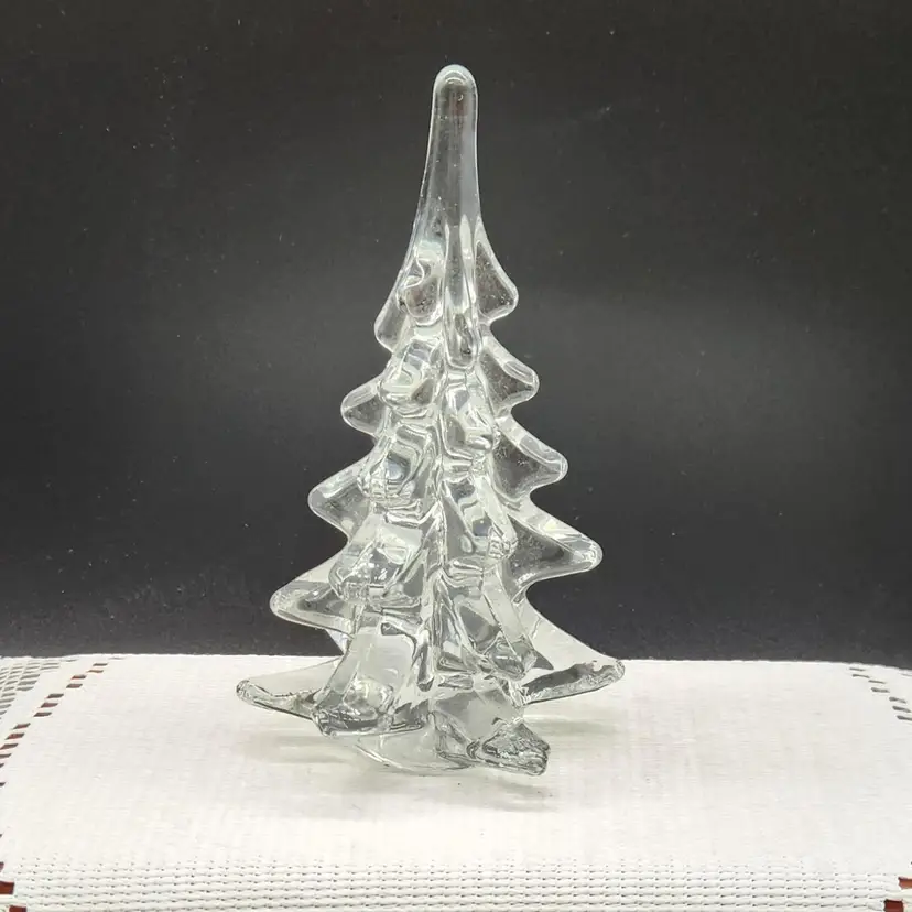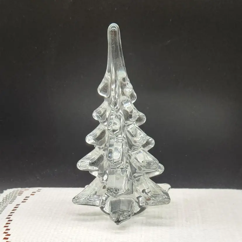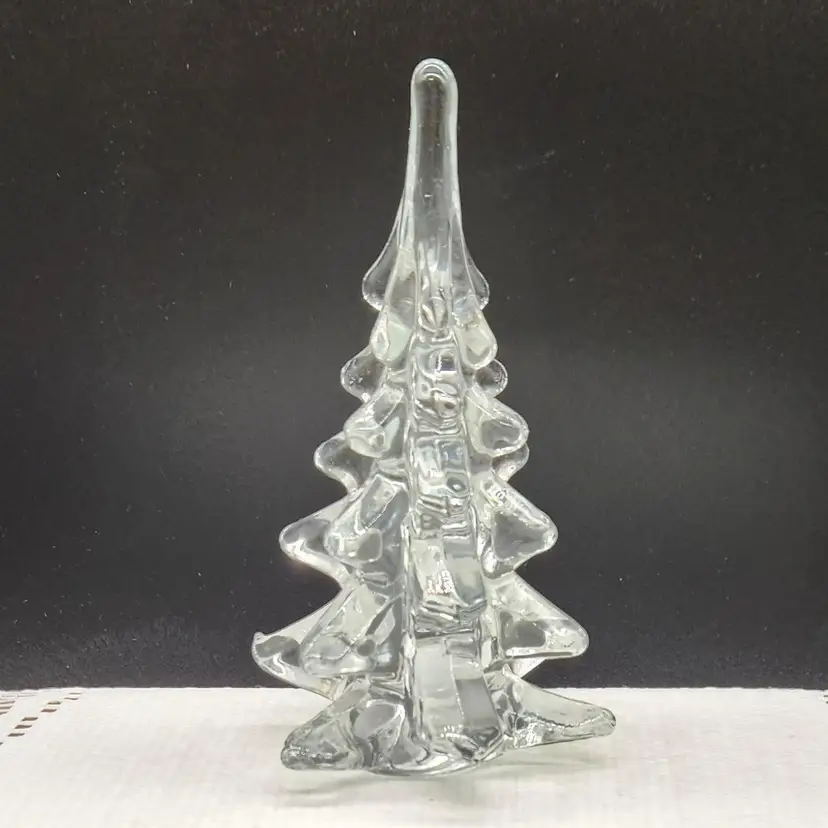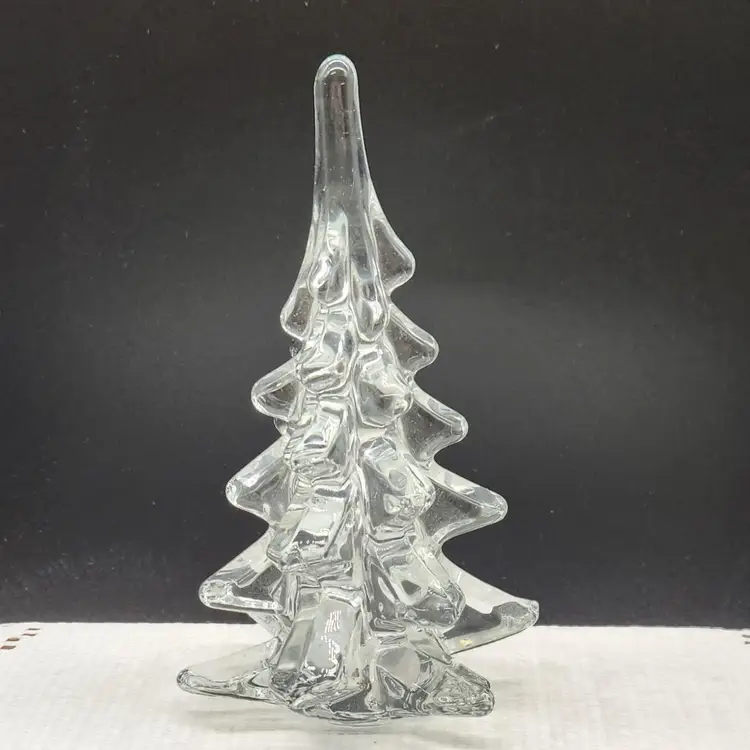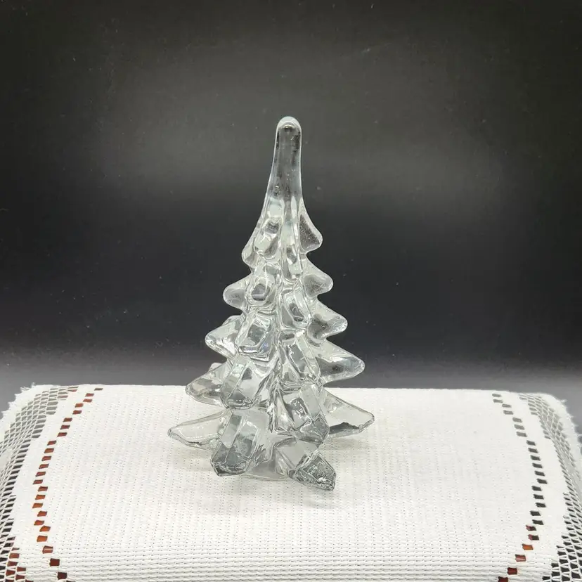 Elegant clear glass Christmas tree figurine, perfect for holiday decor. Measures approximately 6 inches in height. No chips or cracks.