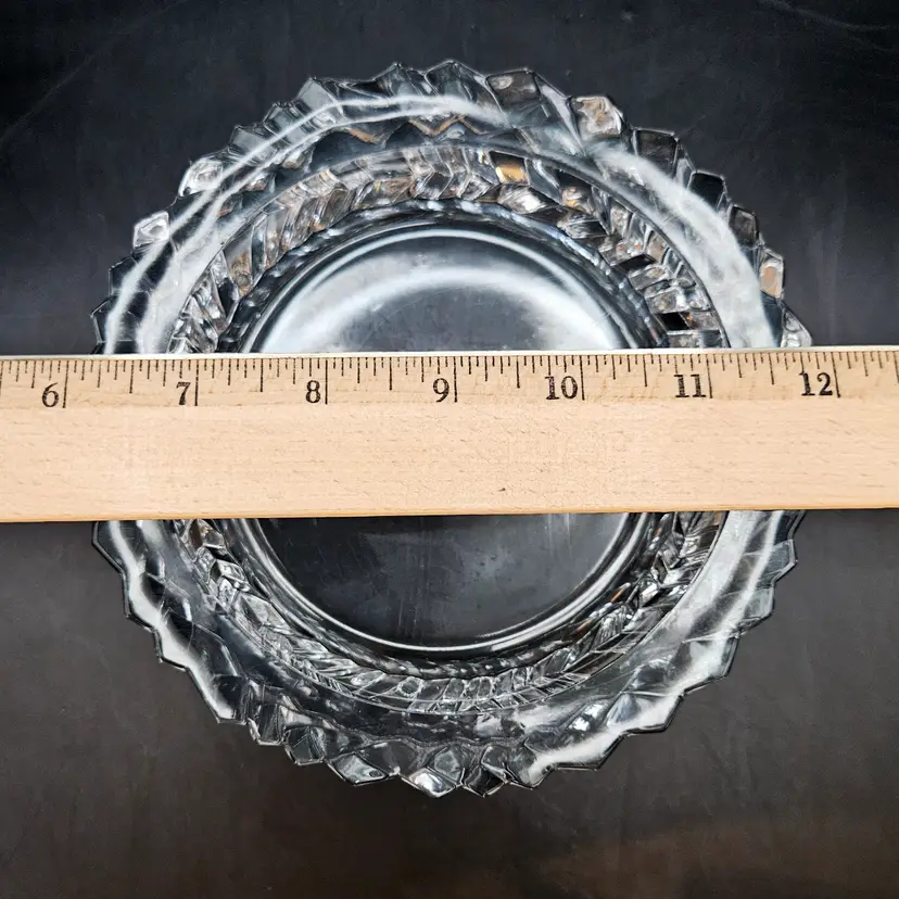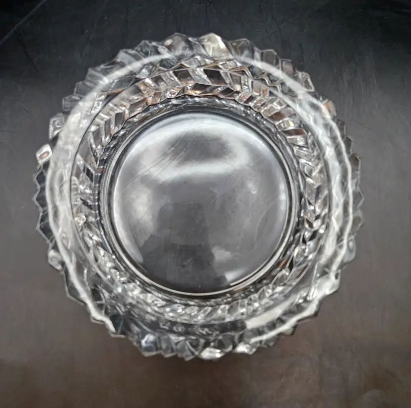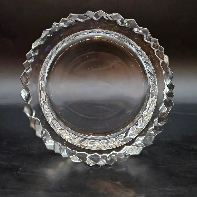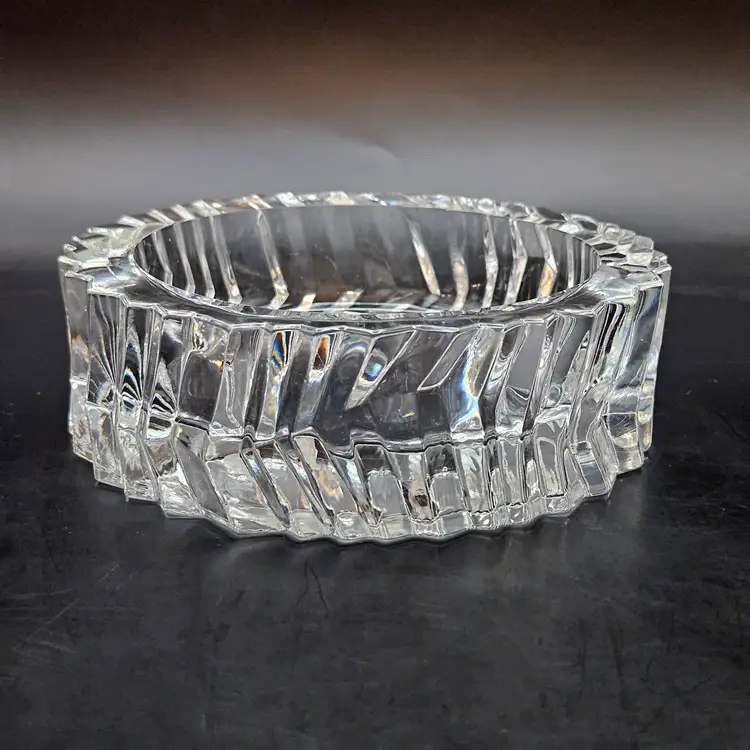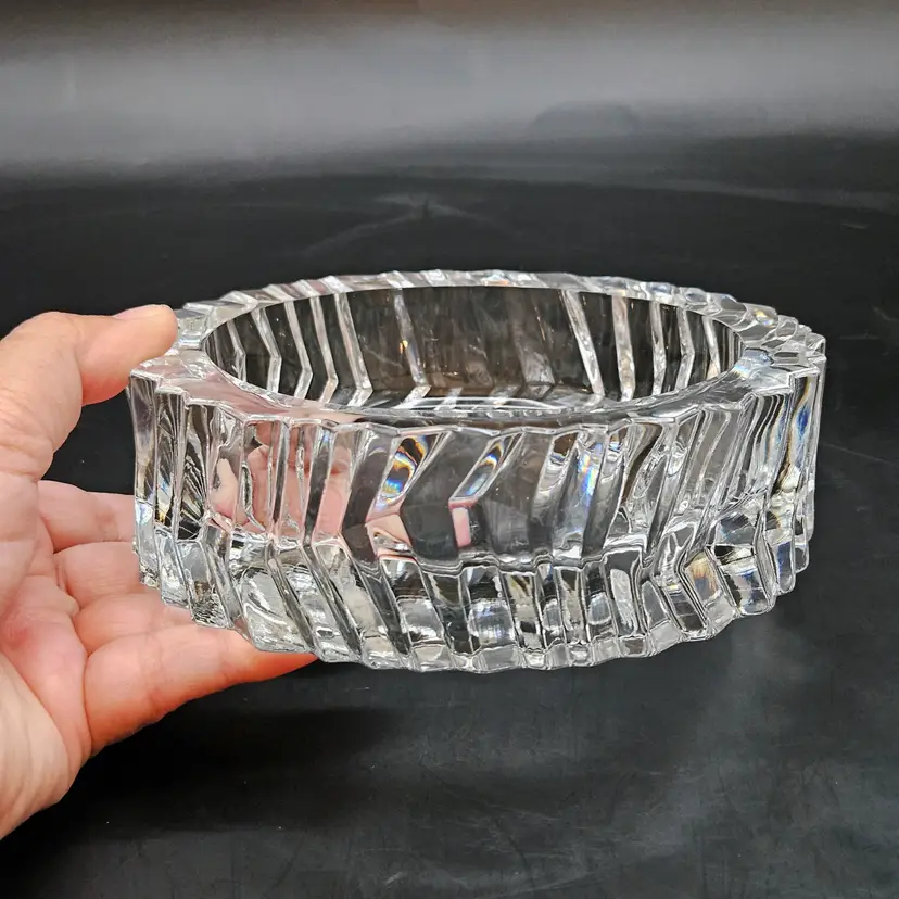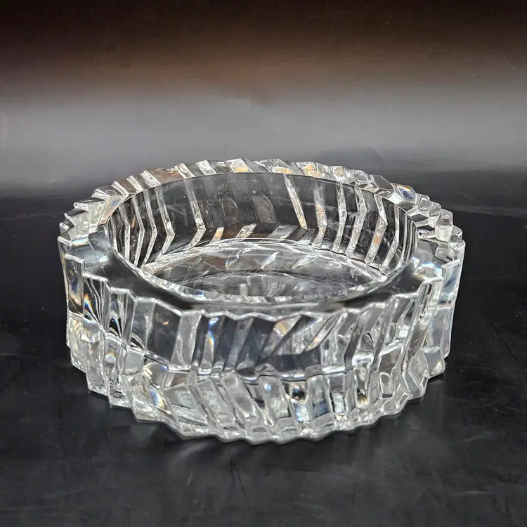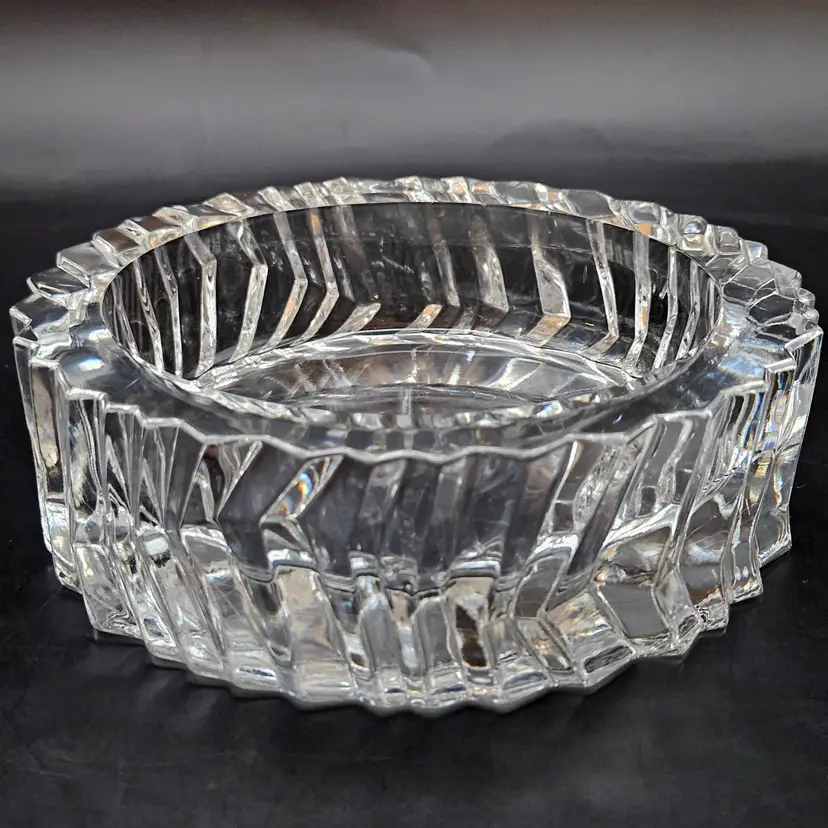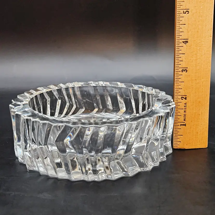 Clear Heavy Cut Crystal Glass Ashtray Trinket Bowl Chevron Zig-Zag Pattern