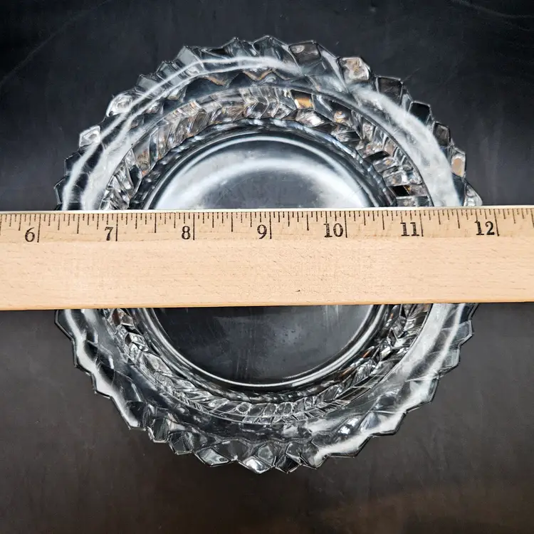 Originally intended as an ashtray, the wide, shallow center and substantial weight make it equally perfect as a trinket dish, candy bowl, or decorative catchall. Its solid construction and brilliant clarity reflect light beautifully, adding vintage charm to any space.