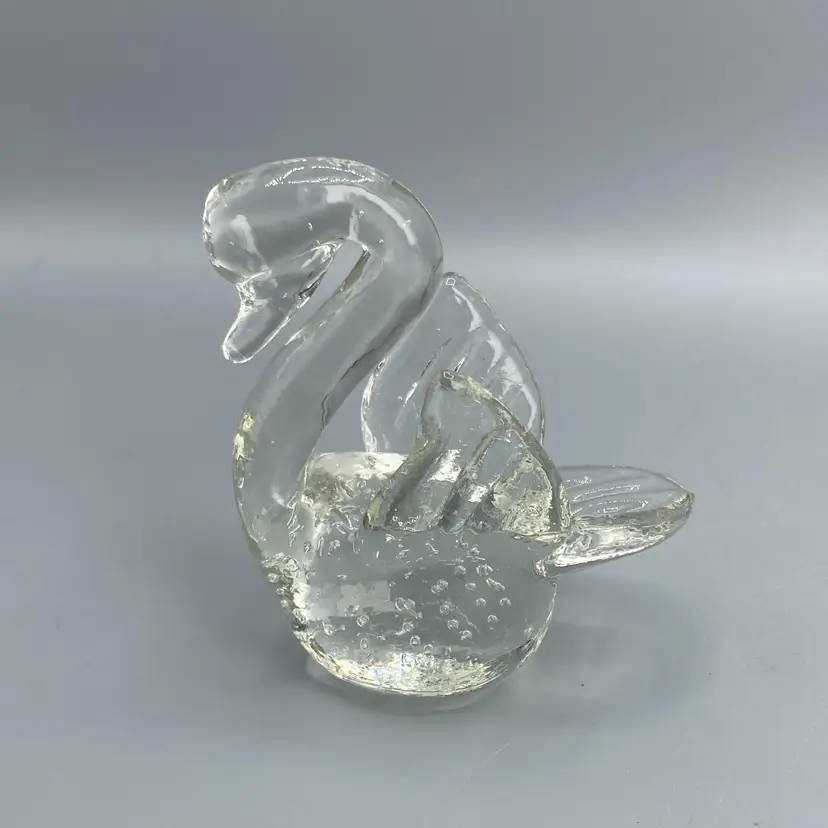 This swan is in good used condition. There may be some minor wear, please see pictures for specific details. This swan measures approximately 3 3/4" tall, 1 3/4" wide (wing to wing), and 3 1/4" from beak to tail.