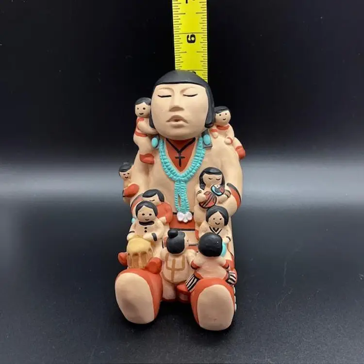 The figurine stands at 5 inches tall and features intricate details that showcase the Hopi storytelling tradition.