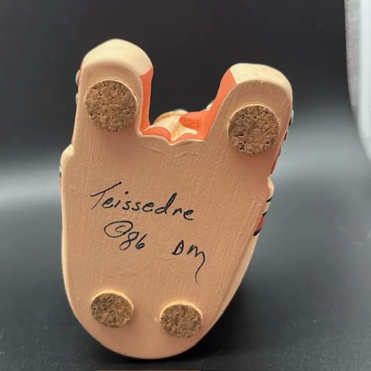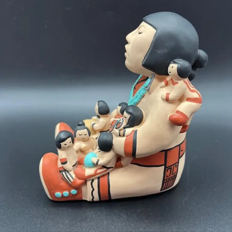 This vintage Hopi storyteller figurine, signed by Cleo Teissedre in 1986, is a unique piece of Native American pottery.
