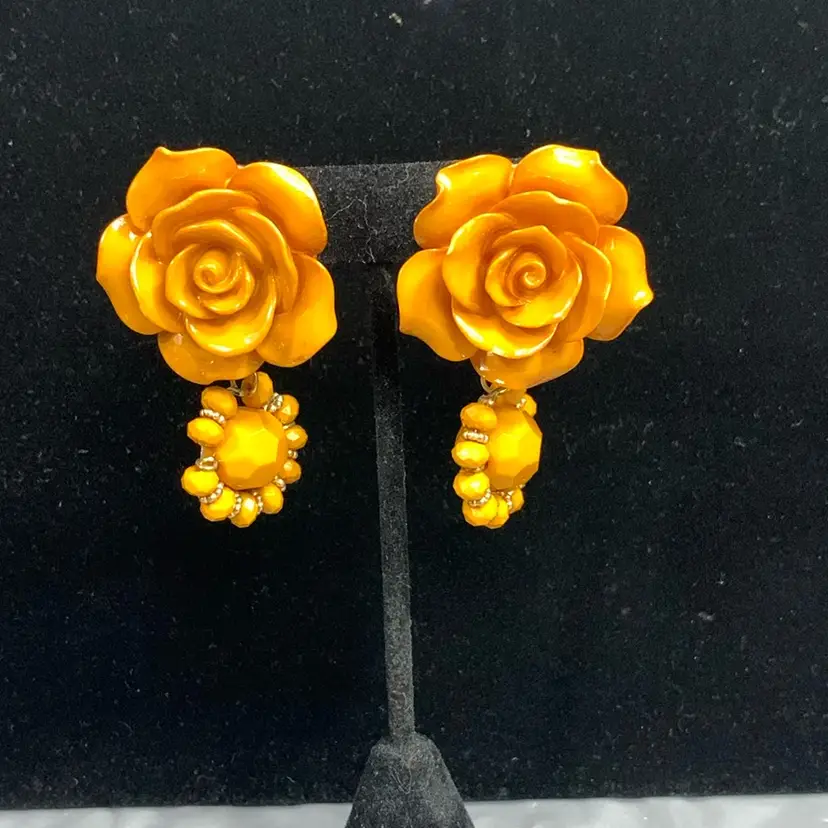 Clip on acrylic earrings, rose dangle