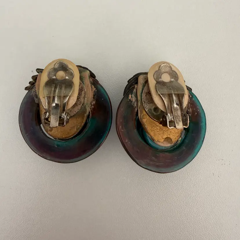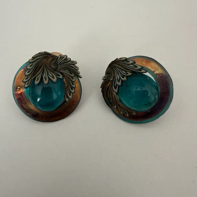 Clip On Blue Glass & Coper Toned Earrings Pre-owned
