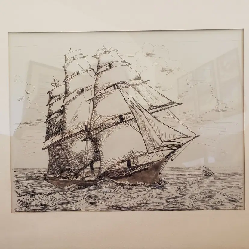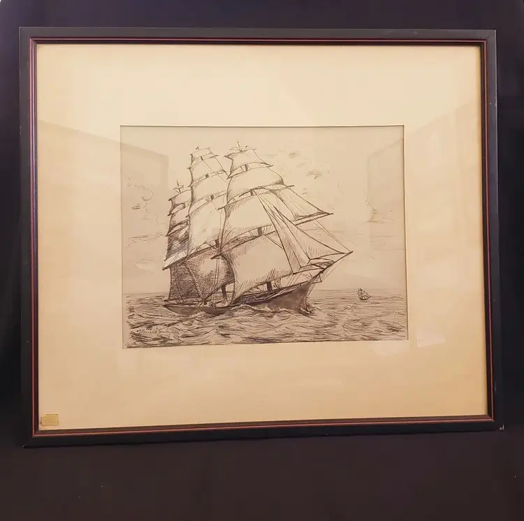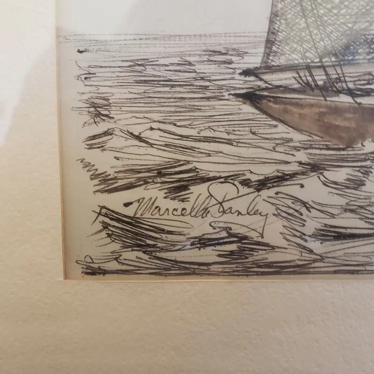 Unit of Sale: Single Piece Signed By: M... Stanley Size: Medium Signed: Yes Material: Ink Certificate of Authenticity (COA): No Item Length: 23 in Framing: Matted & Framed Subject: Seafaring, Seascape, Ships, Maritime, Nautical Type: Drawing Year of Production: 1967 Original/Licensed Reproduction: Original Item Height: 19 3/4" Theme: Art Style: Illustration Art Production Technique: pen and ink Item Width: 23 in Handmade: Yes Culture: Clipper Ships Time Period Produced: 1960-1969 StorFlr