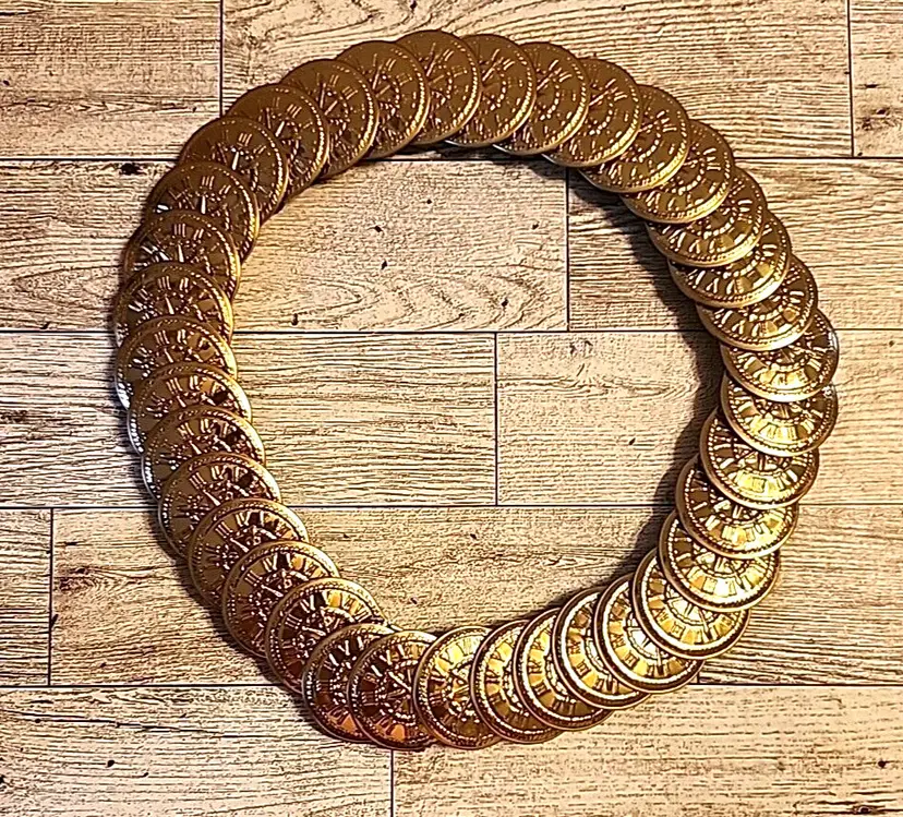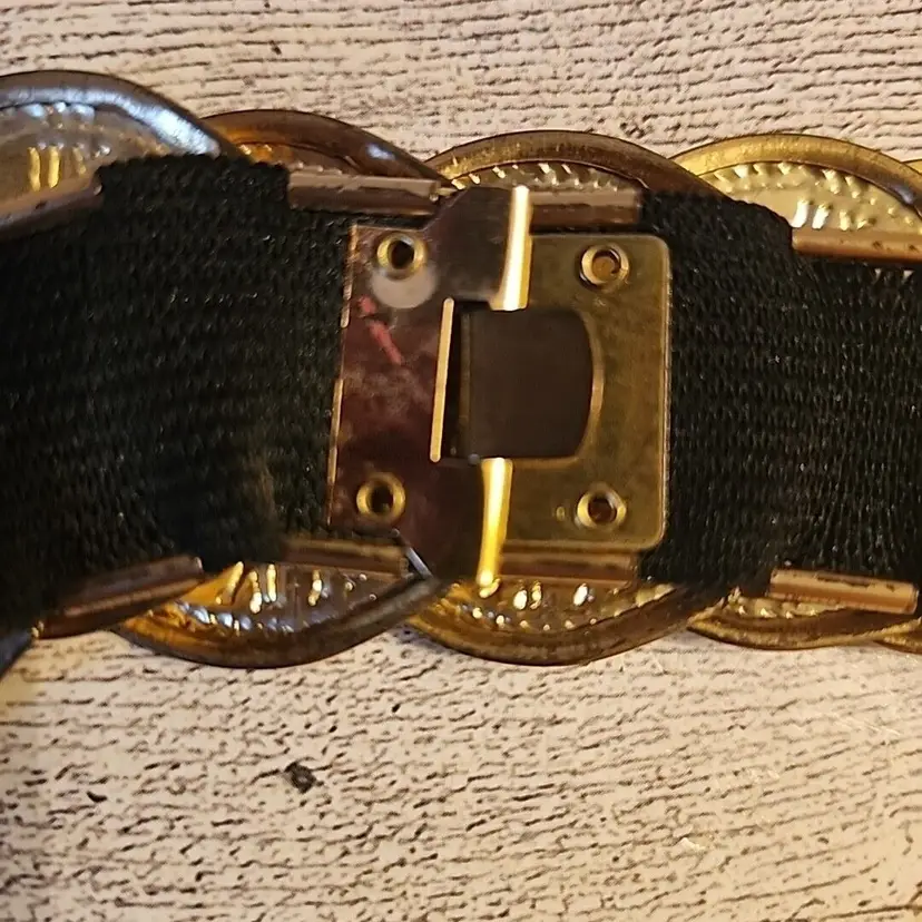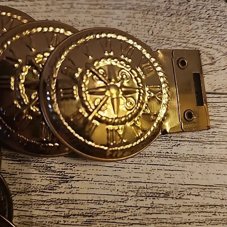 – Features: Stretch – Department: Women – Vintage: Yes – Size: M – Material: Elastic, Metal – Belt Width: 1.5 in wide – Accents: Medallion – Size Type: Regular – Waist Size: 26-28 in – Brand: Unbranded – Style: Waist Belt – Color: Gold – Theme: Coins – Type: Belt