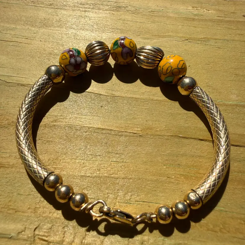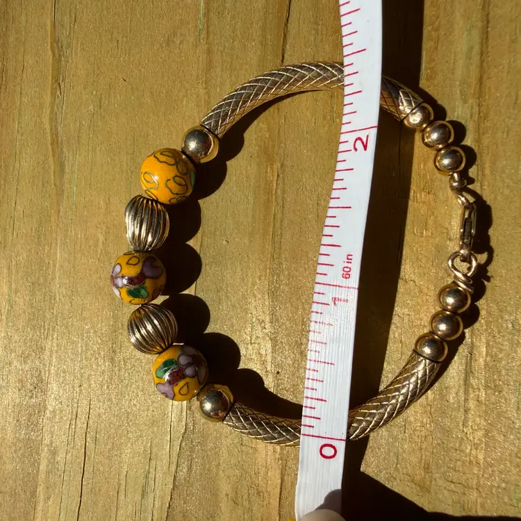 Cloisonné & 14K Gold Filled 14/20 Beaded Bracelet 2.5”