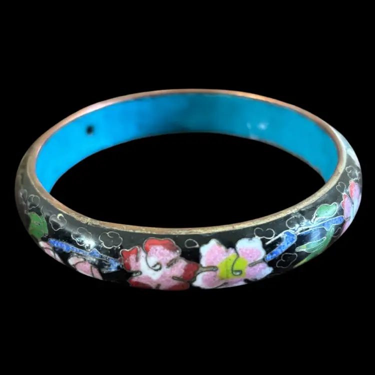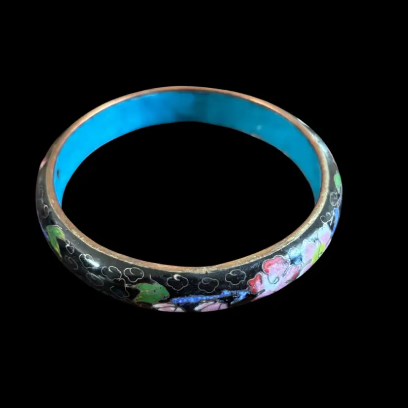 Black base colour with floral accents Good condition 2.5”