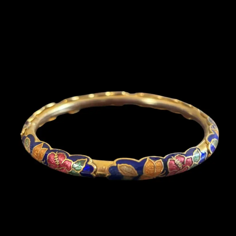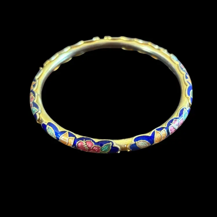 Gold tone with colourful motif of butterflies and florals Good condition 2.5”