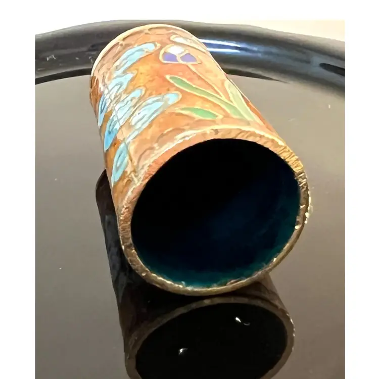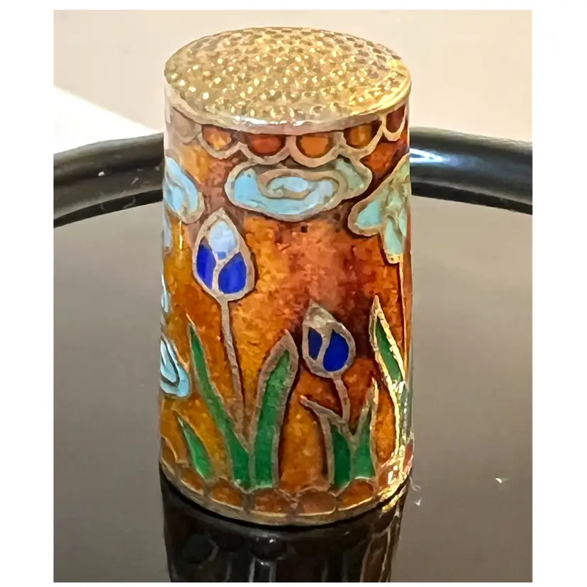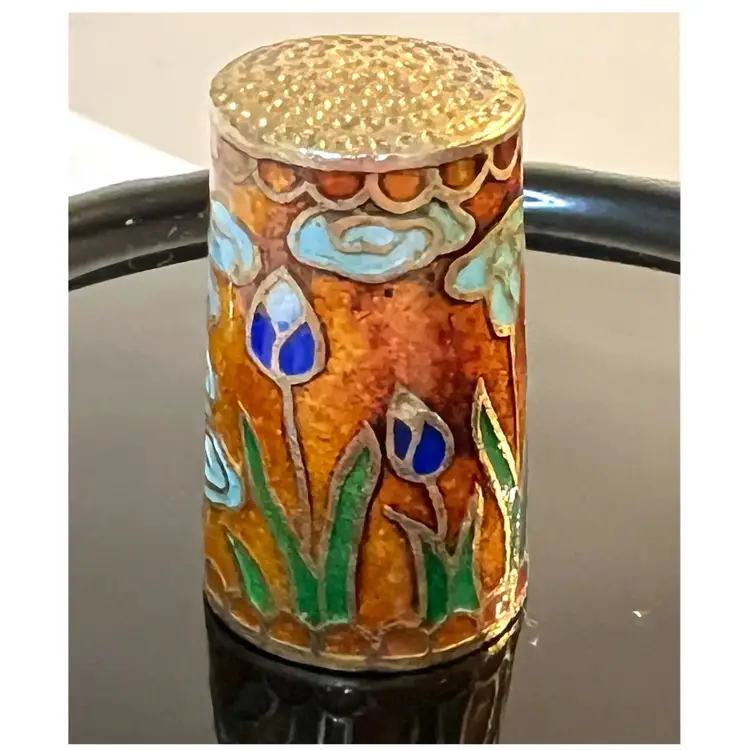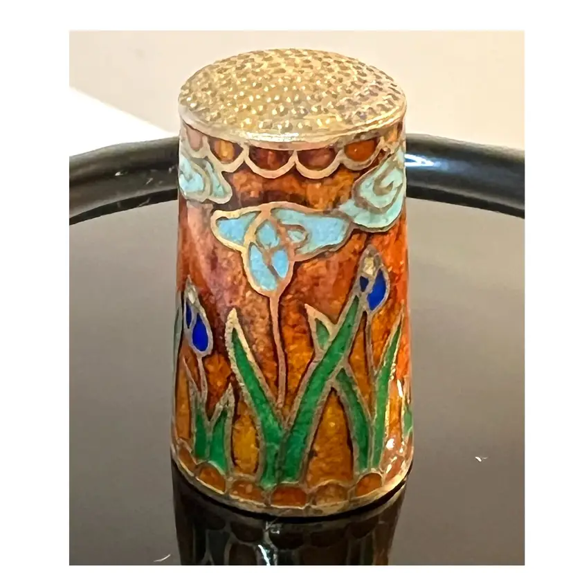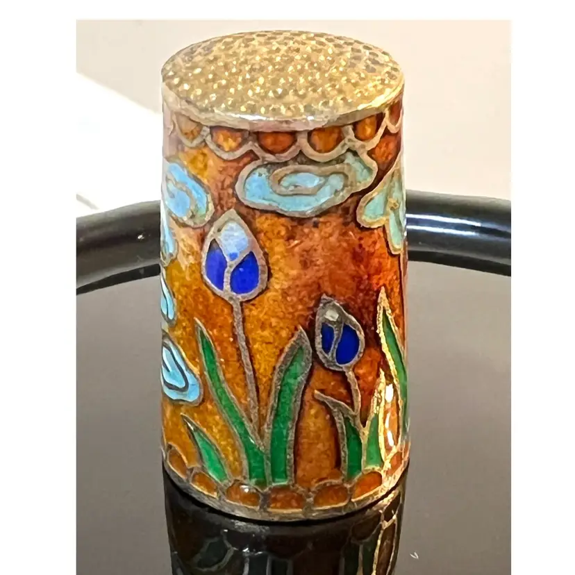 Cloisonne Collectible Enamel Metal Sewing Thimble Butterfly Flowers 1.1 in Height, 0.8 in Diameter. Some discolorations are visible (SEE PHOTOS)
