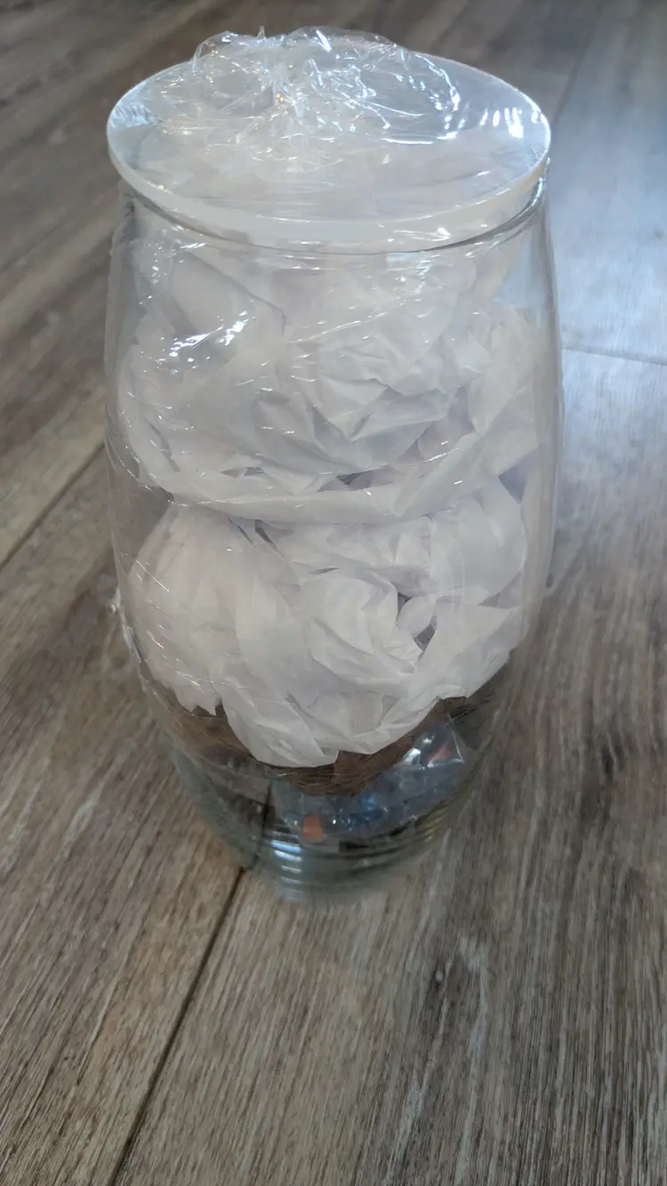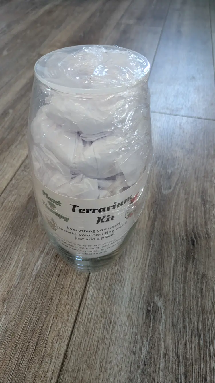 This medium (curved round 10.5" tall by 5" wide) glass acrylic lidded terrarium includes everything you need to make a terrarium at the beginner to intermediate level. Printed directions, care instructions, all layers of the terrarium which will be labeled for you. You'll also receive lots of decor options such as wood, rocks or figurines. Each kit has a theme. Just Add your own plants and imagination.