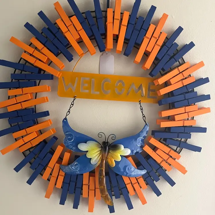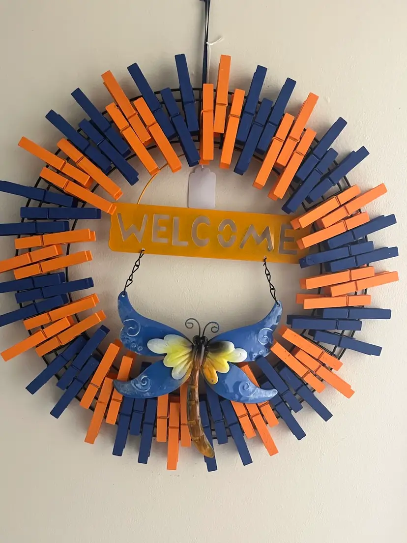 All clothespins are hand painted. Wreath is made on a 14 in frame.