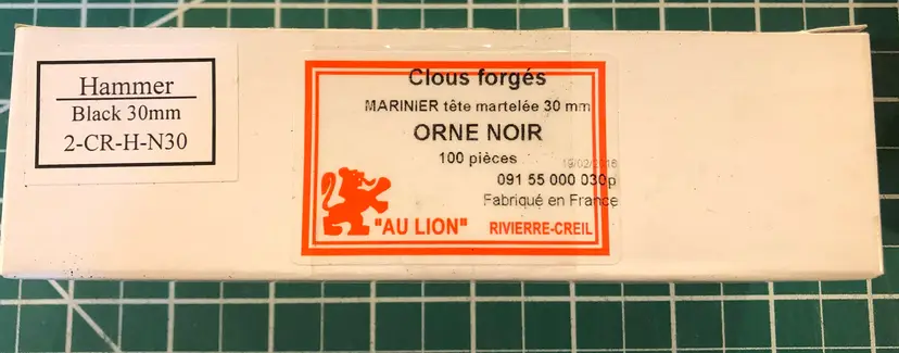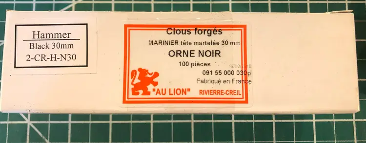 The nails are manufactured in France and can be difficult to locate at present. They can be ordered from the factory in France or alternatively, Lee Valley currently offers the diamond head nails in boxes of 50. I am offering these at about 25% below the current list price.