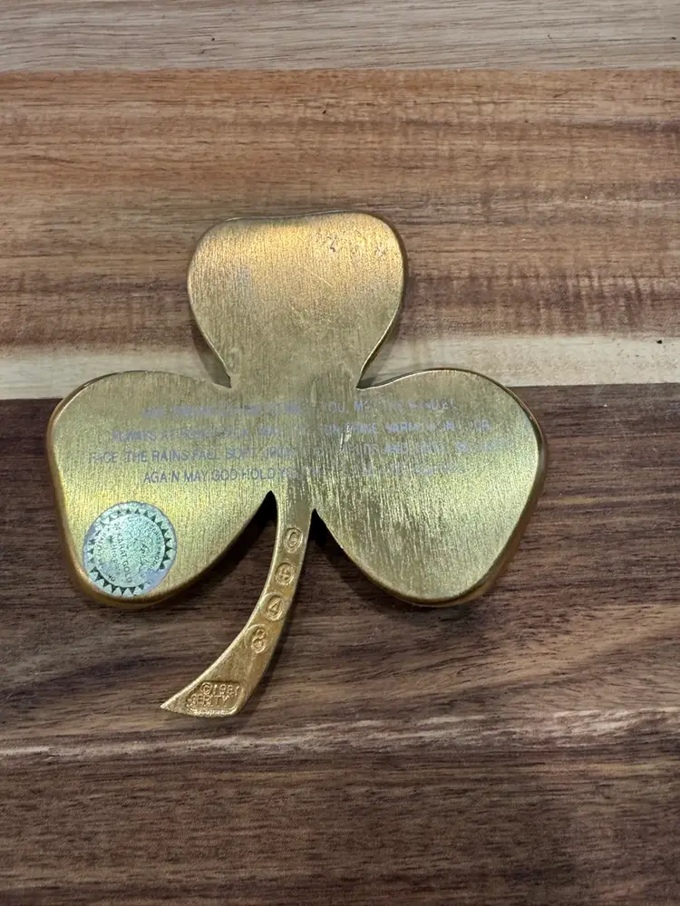 Gold plated shamrock made in USA by Gerity in the 1980’s