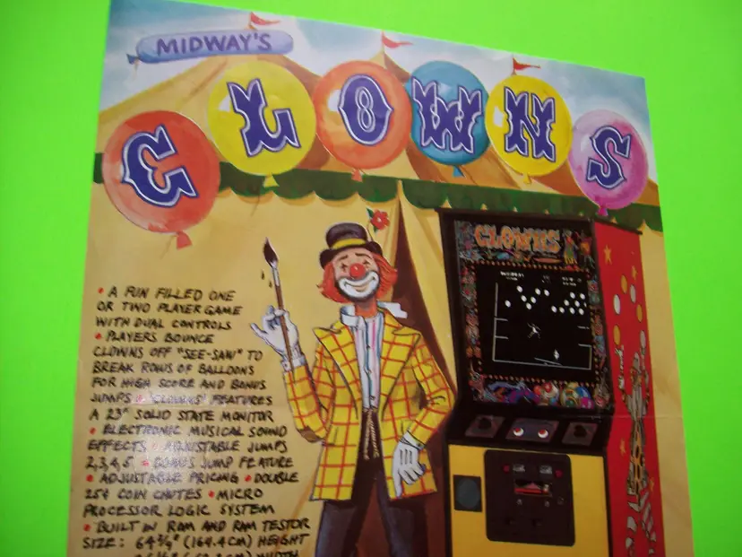 CLOWNS Original 1978 Retro Vintage Video Arcade Game Promo Sales Flyer