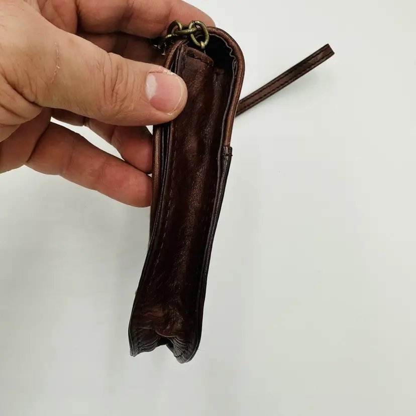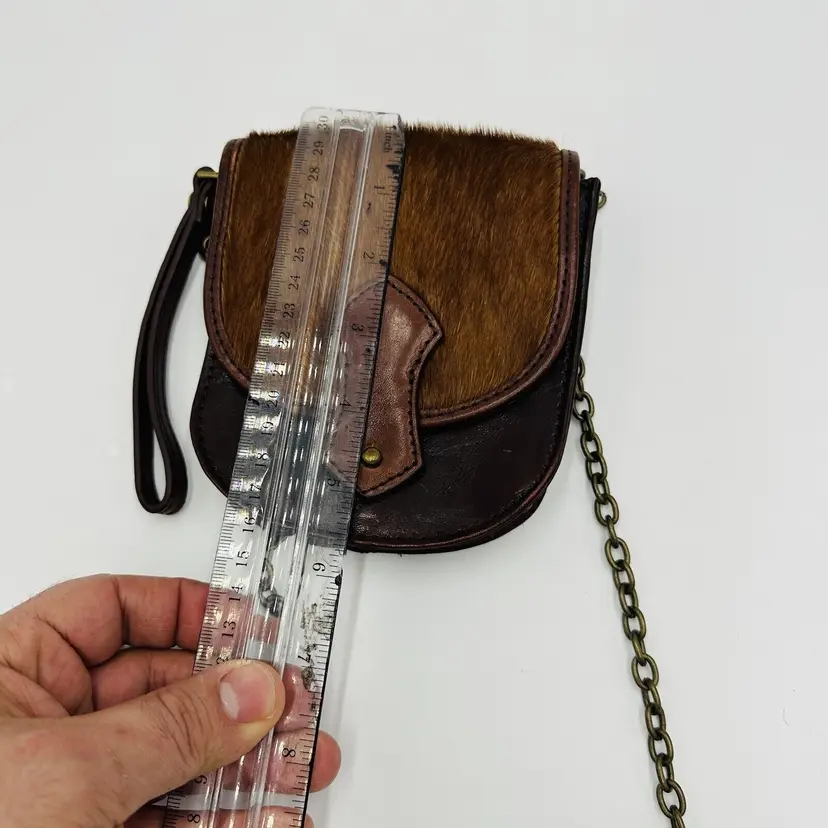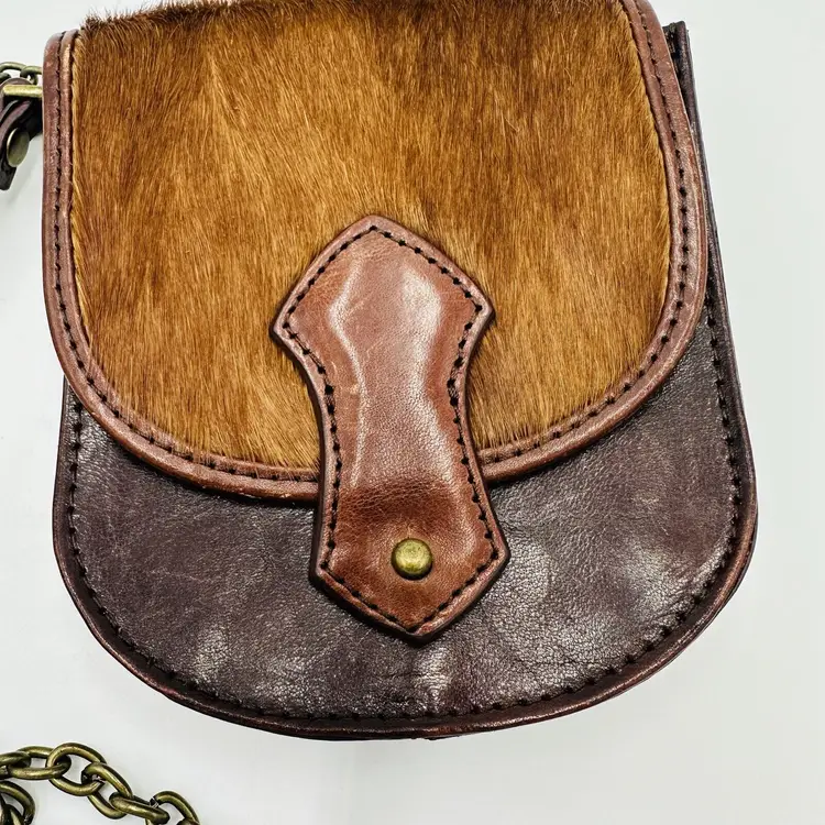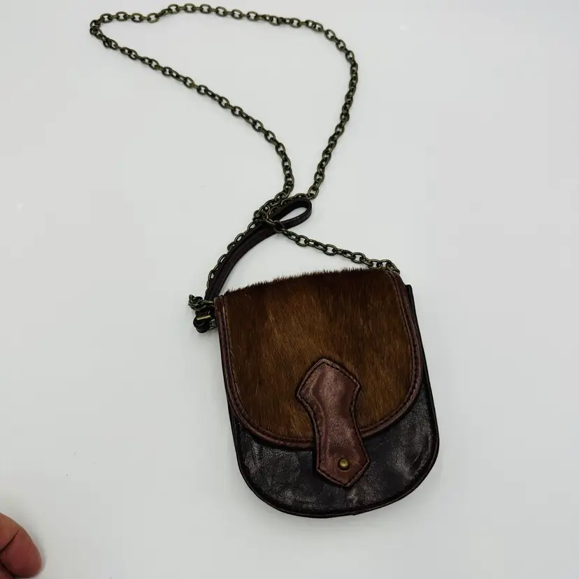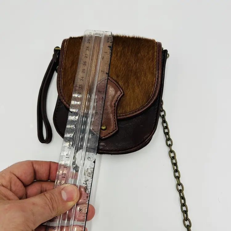 Features: Chain Strap Exterior Color: Brown Department: Women Pattern: Leather Lining Color: Black Exterior Material: Leather Handle/Strap Color: Brown Bag Height: 5 in Size: Small Product Line: Club Monaco Hardware Color: Brown Handle/Strap Material: Leather Bag Width: 5 in Bag Depth: 5 in Brand: Club Monaco Style: Crossbody Closure: Button