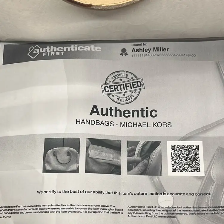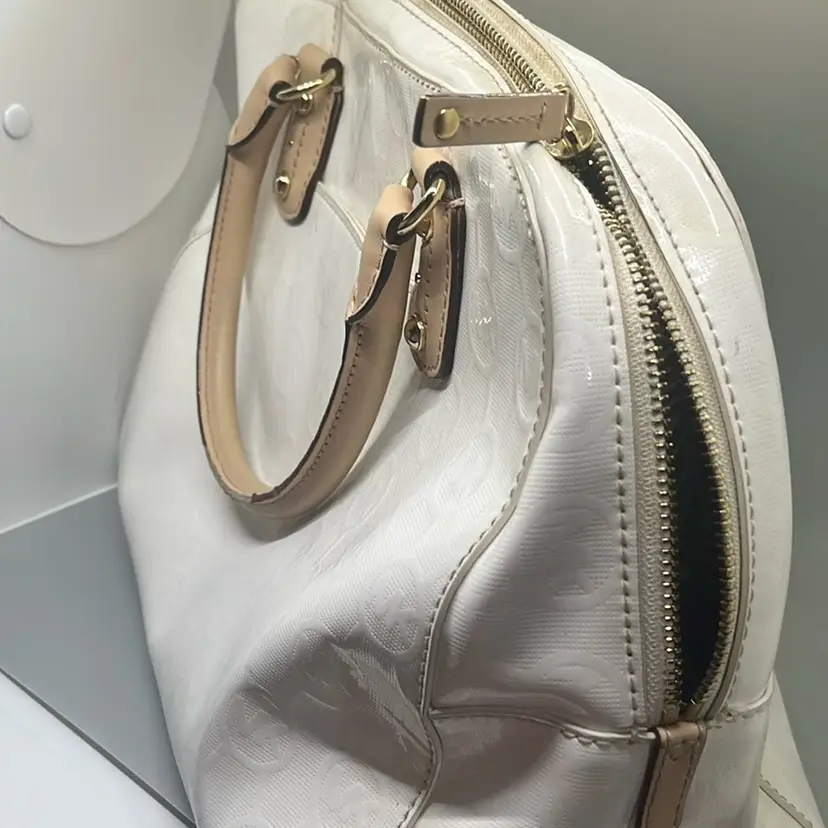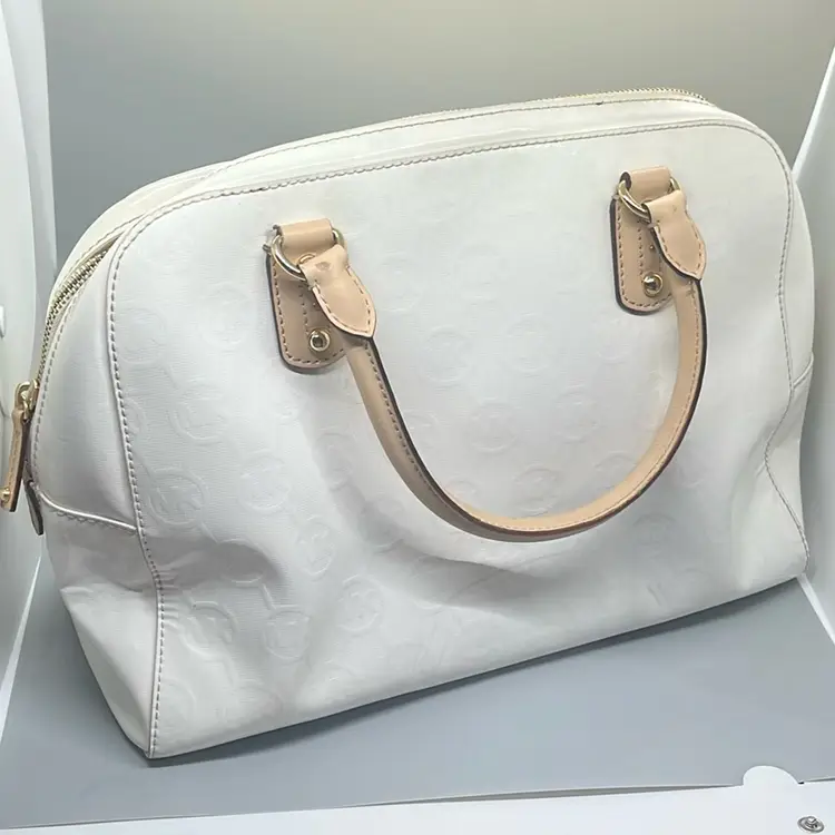 Retail: $248 Purse comes with a Certificate of Authenticity One handle has slight wear. Protective coating over seam is off in a small section. Outer pocket has a rub mark Opposite side has a half circle mark possibly from the handle rubbing. Interior is like new. Hardware works perfect.