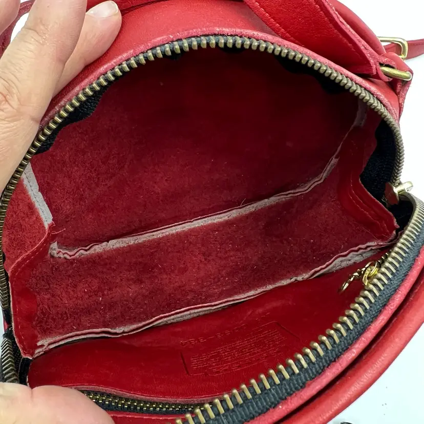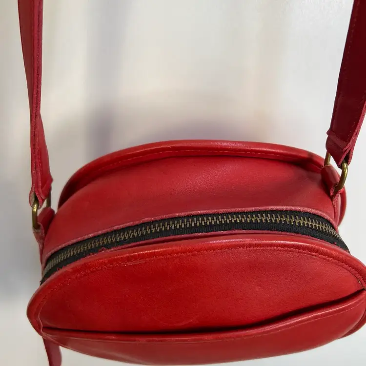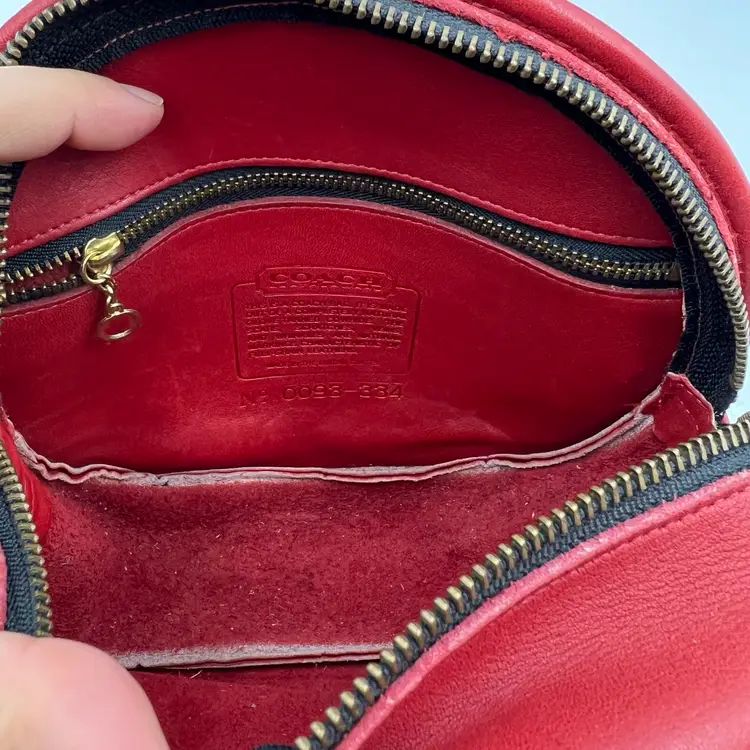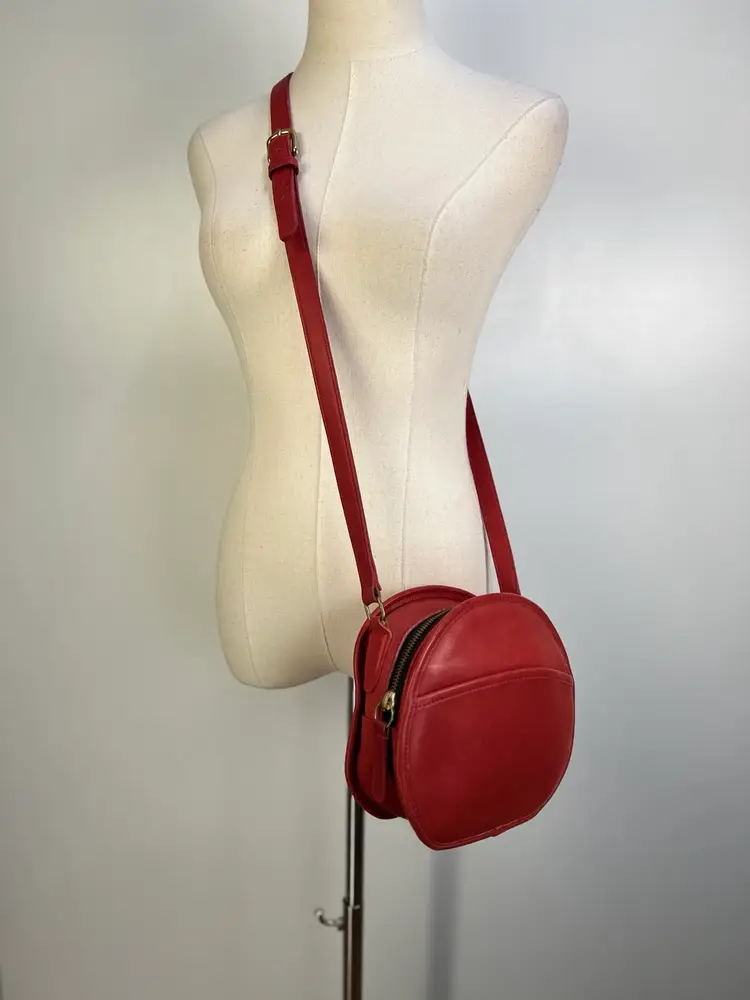 Coach Chester Canteen Crossbody Red Leather Bag 9901 Size 7.50 x 9 x 3” Preowned item in excellent overall condition. Cleaned and conditioned for a new owner. Zip pocket inside. Slip pocket on the exterior. Made in the USA. From the 1992-1994 era.