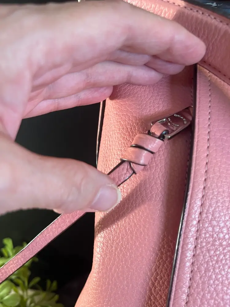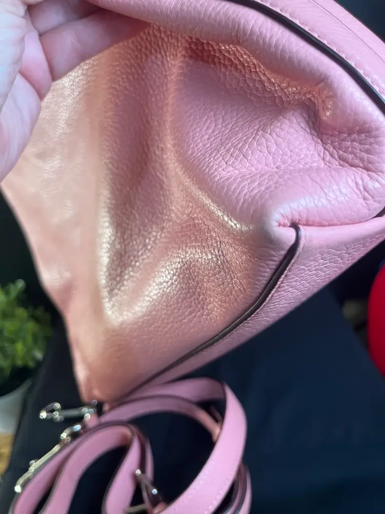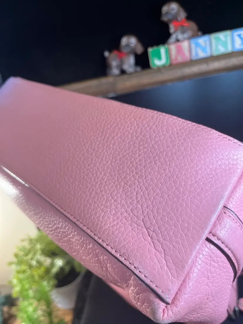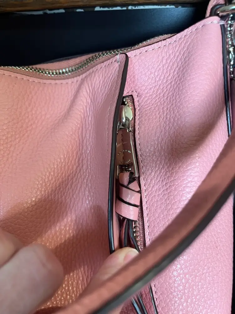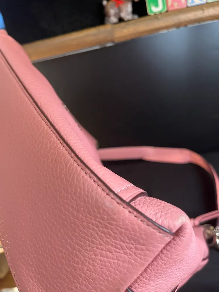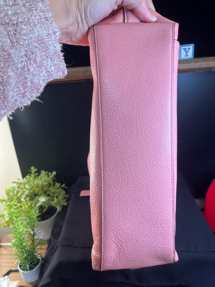 Absolutely beautiful quality purse. NO wear on straps or in the interior. 2 divided vertical zippered pockets on the front outside. Beautifully and evening stitched. Zippered enclosure to the inside. W/ one small zippered side pocket inside. Silver toned hardware is all stamped with COACH &/or its logo. It weighs approx 1 Lb 13 Oz, Measures approx 13" at base of purse, 12" vertically on outside side of purse.