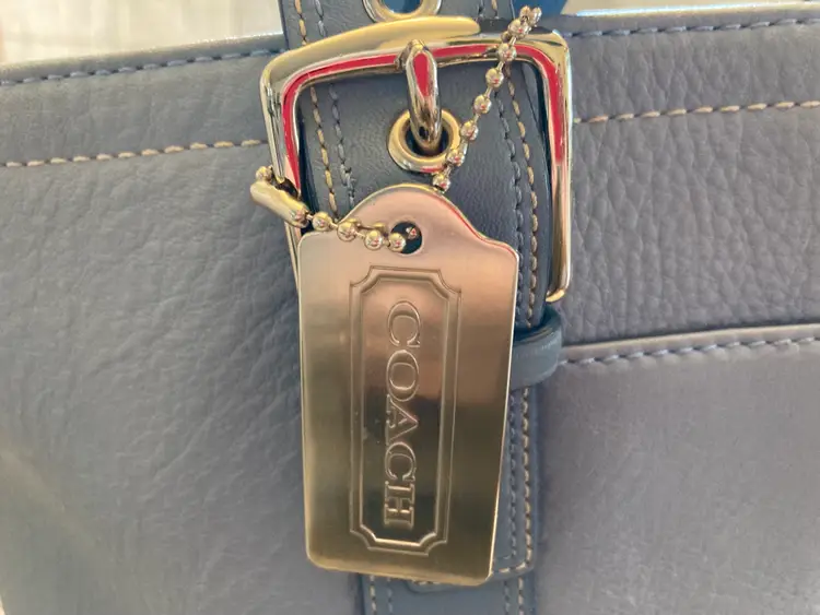 Adjustable handle straps, one outer front slip pocket. COACH metal Hang Tag.