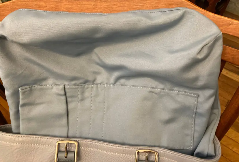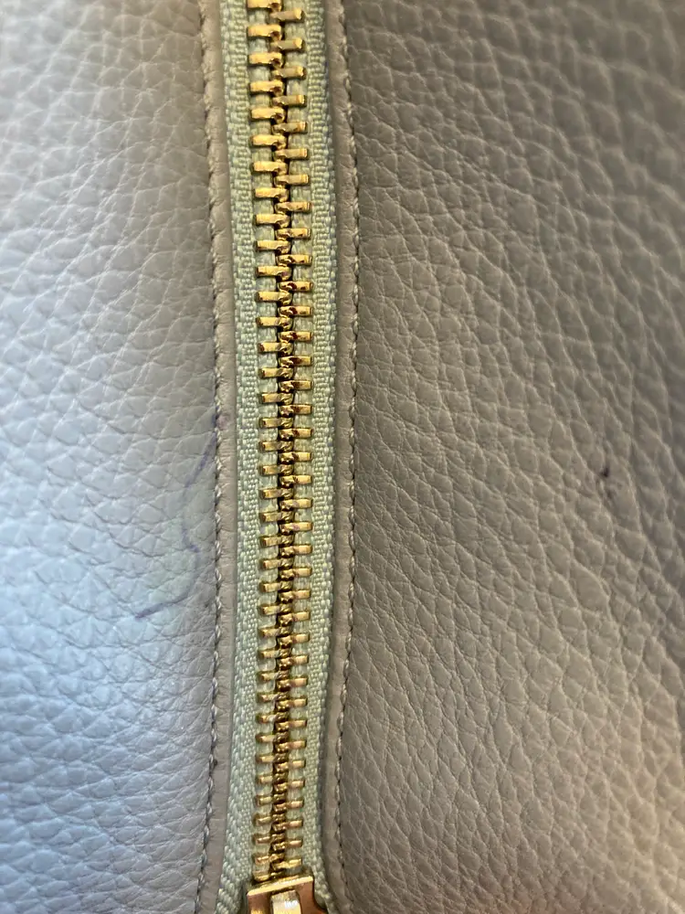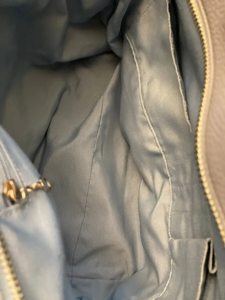 Normal signs of wear; some light stains on inside lining. Lightly stained and pen marks on outside near zipper closure. See the picture showing ink stain on outside.