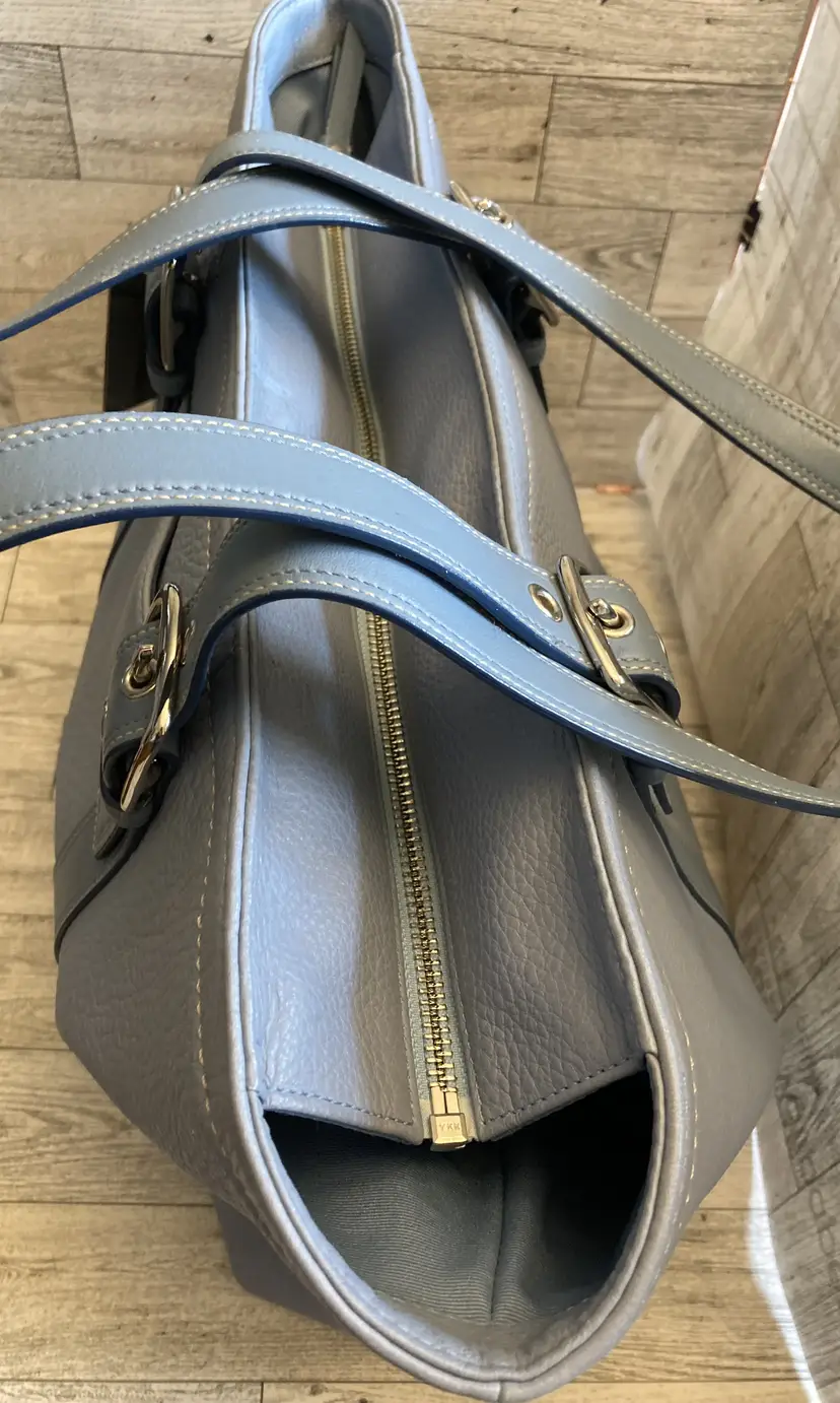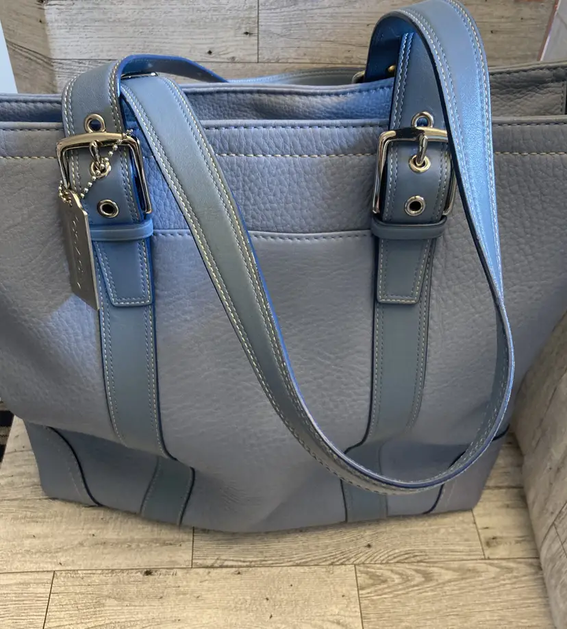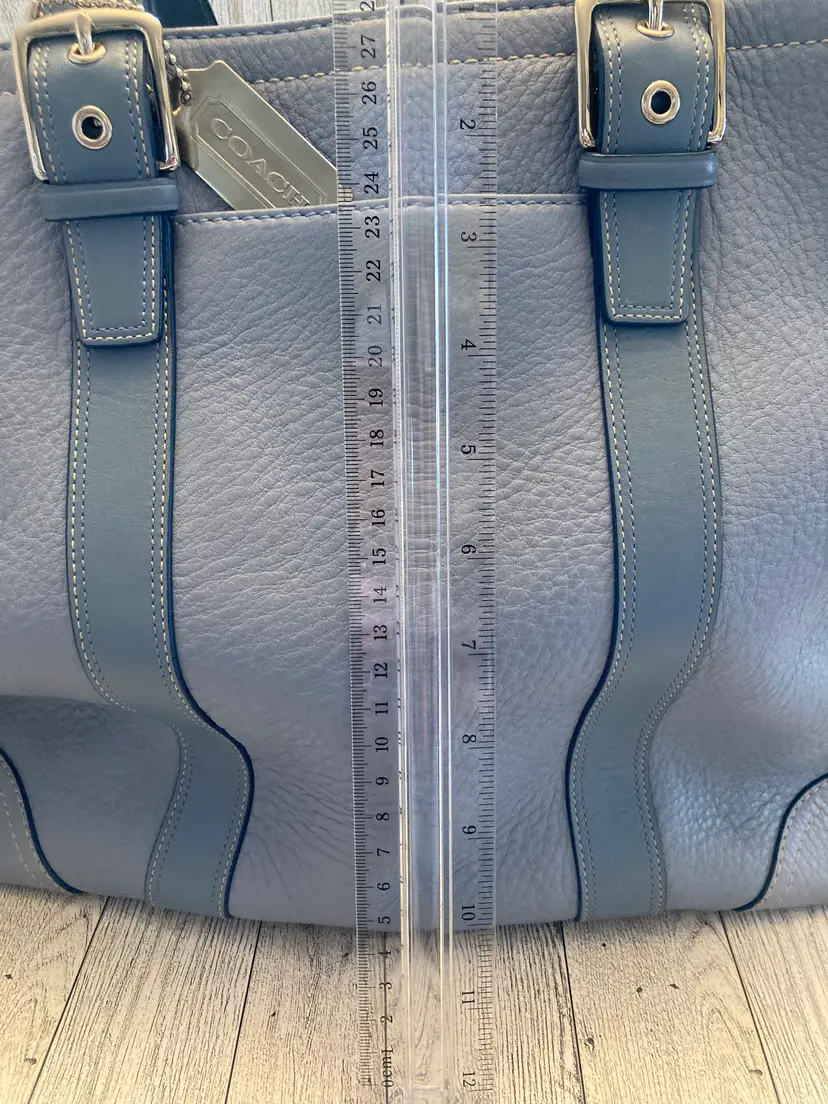 Coach, Hampton Signature Baby Blue Pebbled Leather, Large Book Tote Handbag Purse No. J0682-F10693.