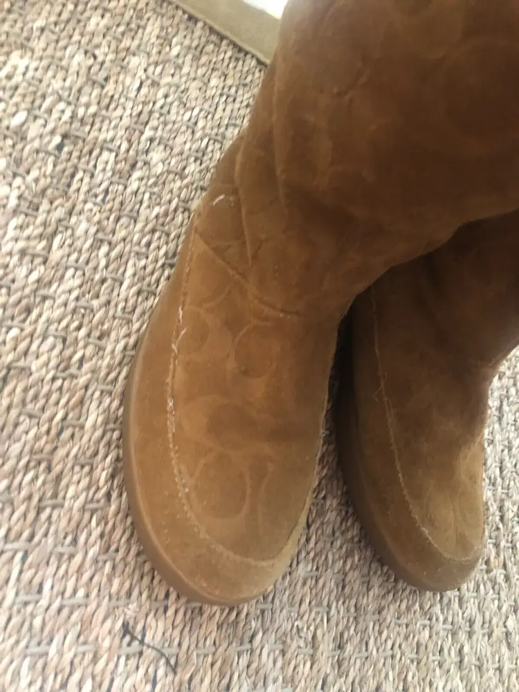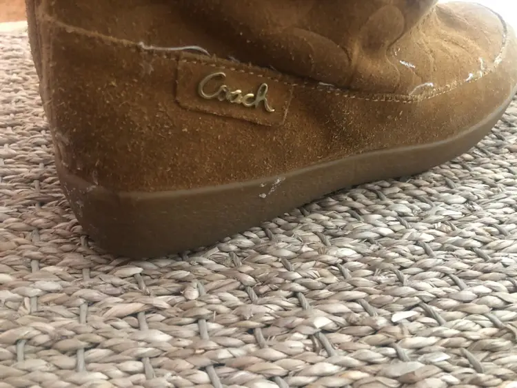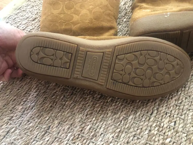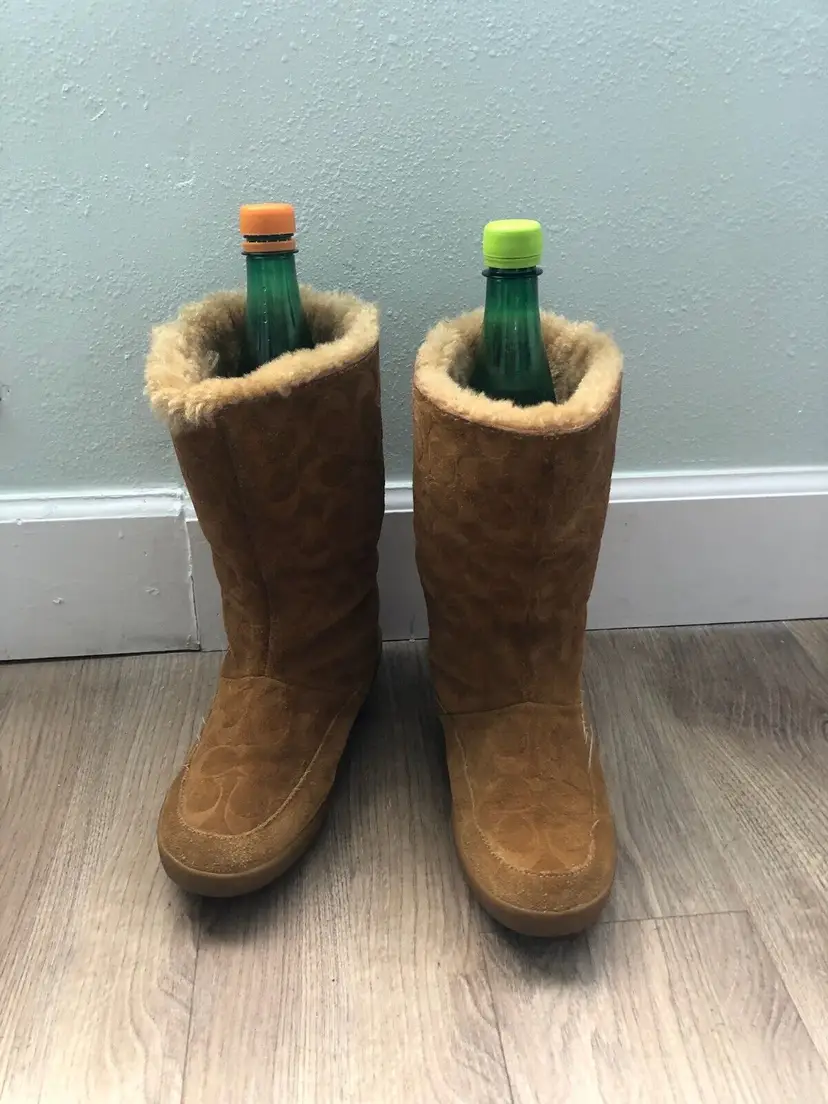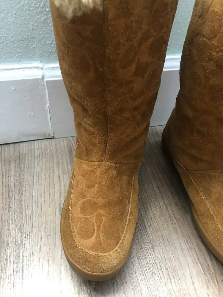 Model: Monogram Shoe Shaft Style: Mid-Calf Pattern: signature Toe Shape: Round Toe Character: Coach Signature, Boots Closure: Pull On US Shoe Size: 9 Color: Brown Lining Material: Fur Brand: Coach Department: Women Type: Boot Customized: No Heel Style: Wedge Style: Boots Theme: Winter Features: Lined Season: Winter Upper Material: Cotton Product Line: Coach Signature
