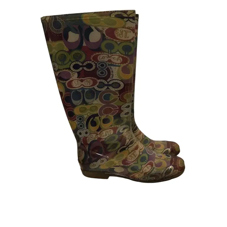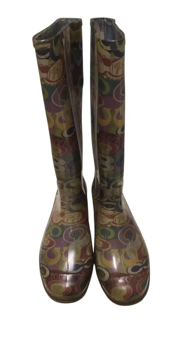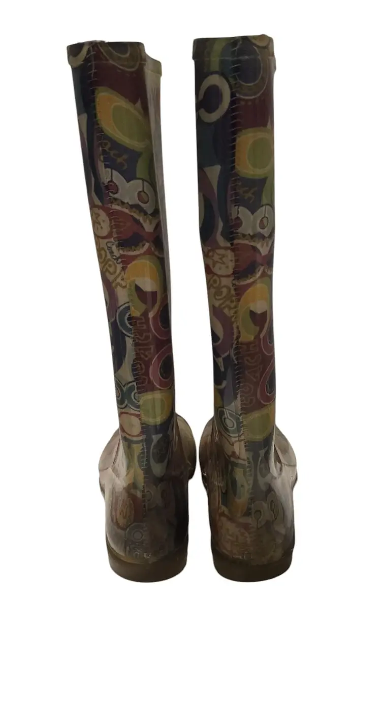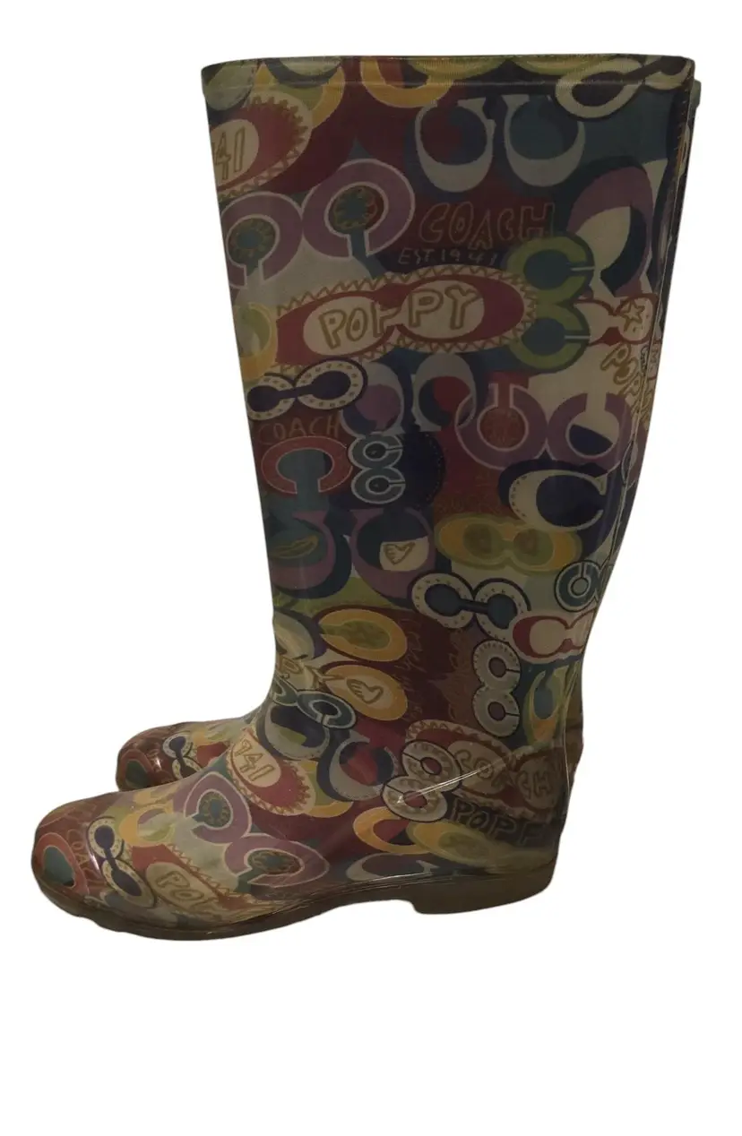 Coach Poppy Graphic Colorful Rain Boots Size 6 - Waterproof Multicolor