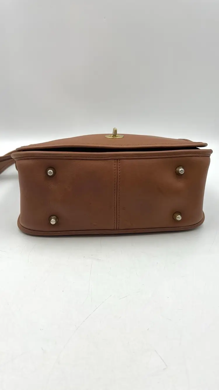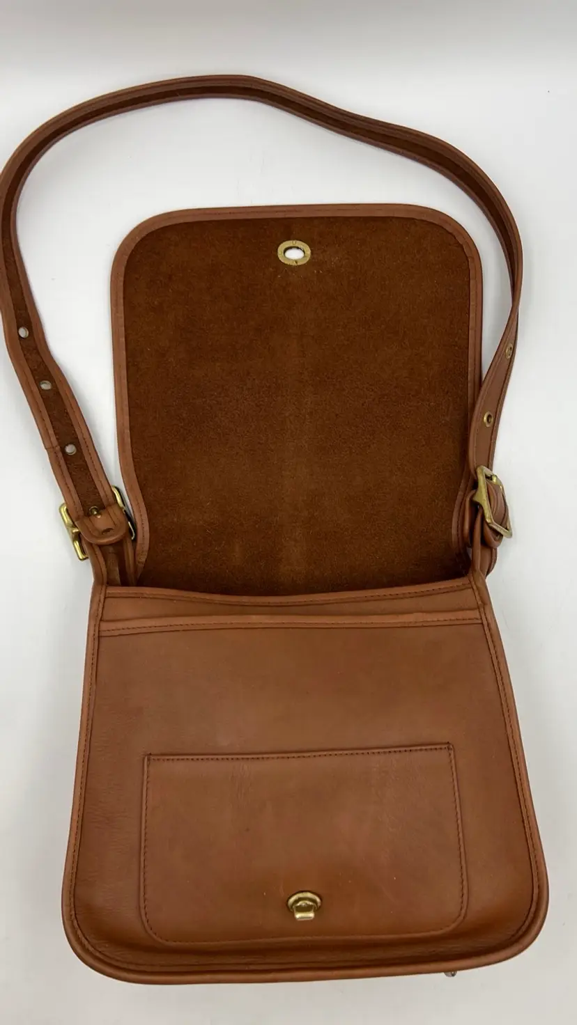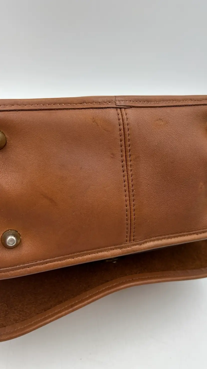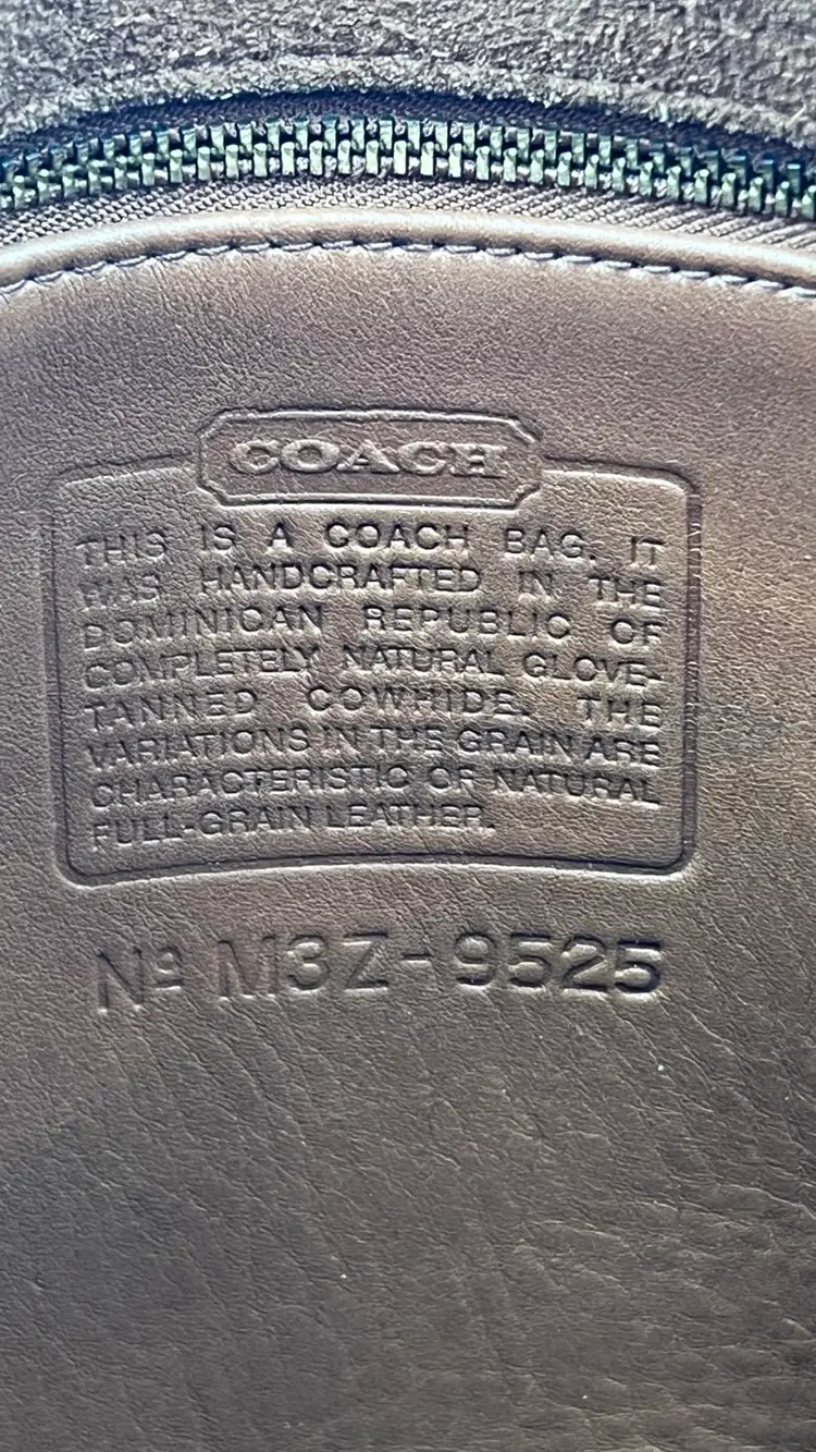 Vintage 90s Coach Stewardess Bag Tan Leather Handbag 9525 Purse Crossbody Size 11.5 x 8.5 x 4” Preowned item in excellent condition. Inside there are some light pen marks. Exterior bottom has some light marks upon close inspection. Nothing out of line with a preowned bag from 1993. Has been cleaned and conditioned for a new owner. Crafted from high-quality leather, this bag is built to last and will only improve with age if properly maintained. Made in the Dominican Republic.