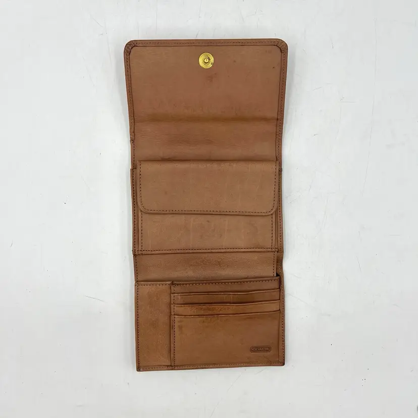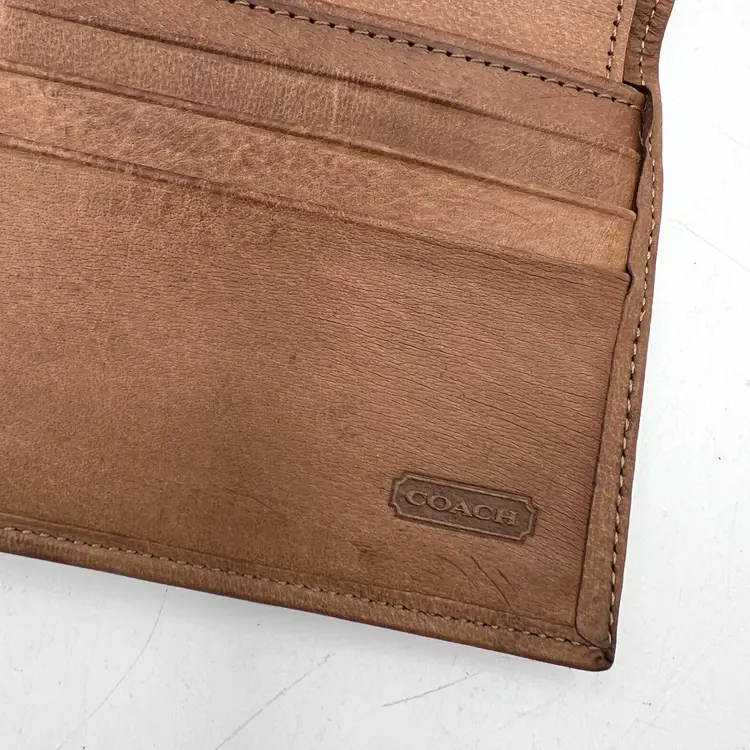 Vintage Coach Trifold Wallet Water Buffalo Leather British Tan