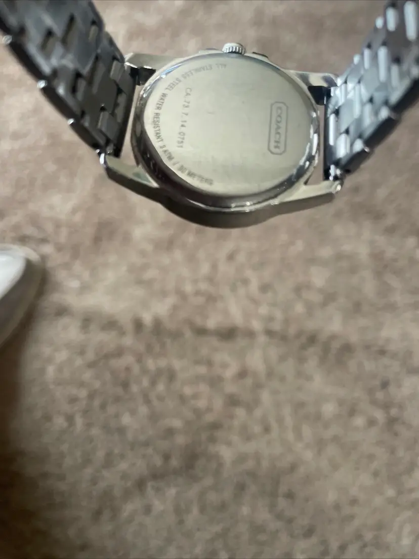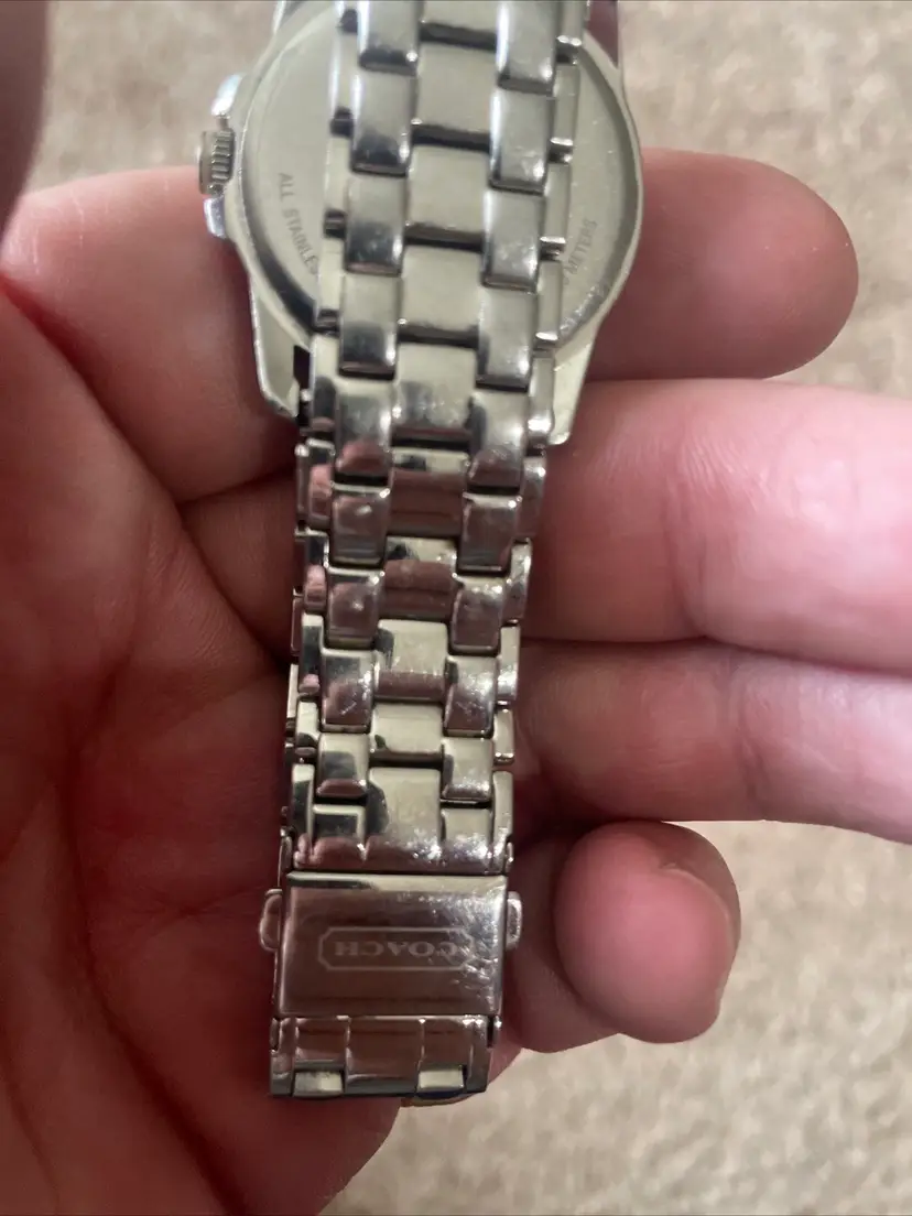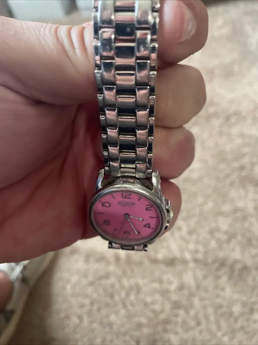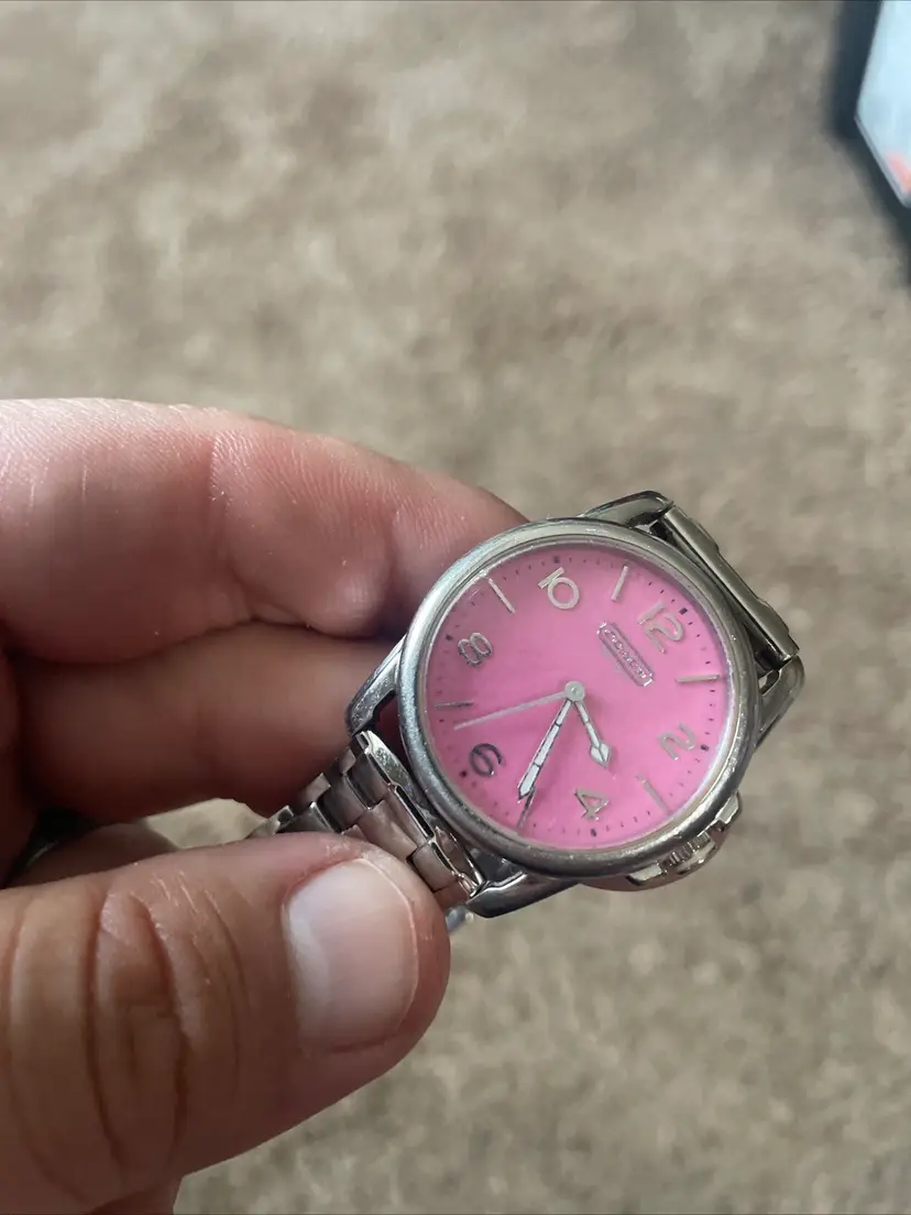 Pink face coach watch with bag charm. Watch needs a battery!