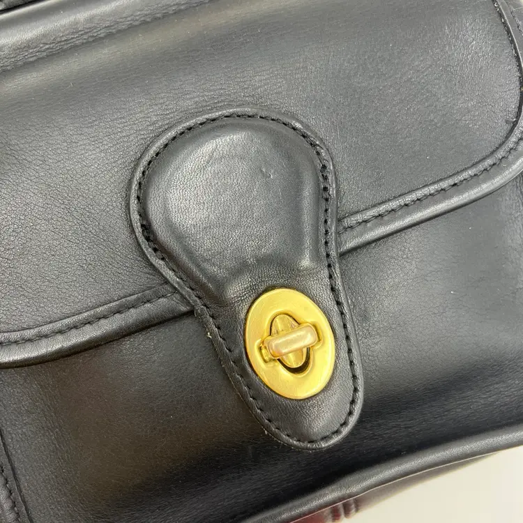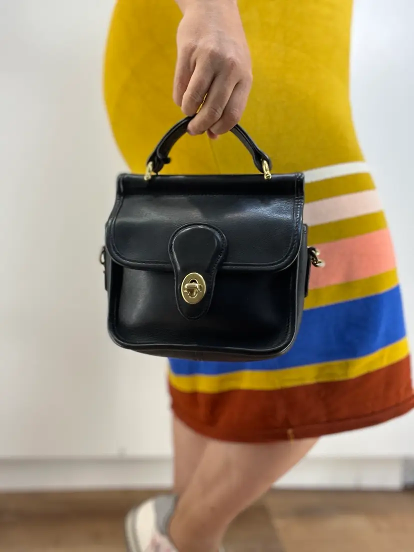 Vintage Coach Winnie Top Handle Bag in Black Leather Size 7 x 6.50 x 3” Preowned item in excellent overall condition. No odors, stains, or holes. has been cleaned and conditioned for a new owner.