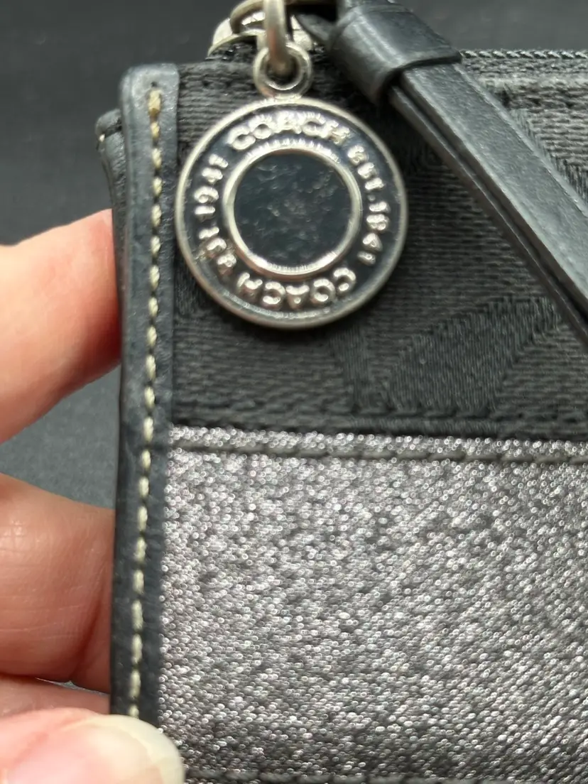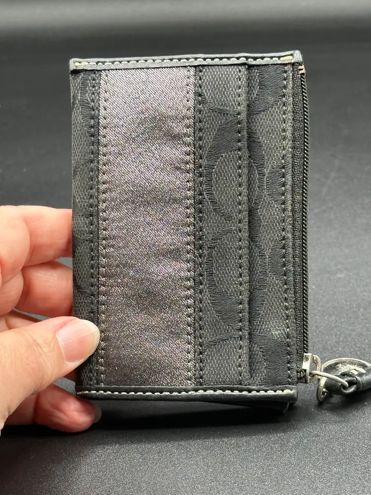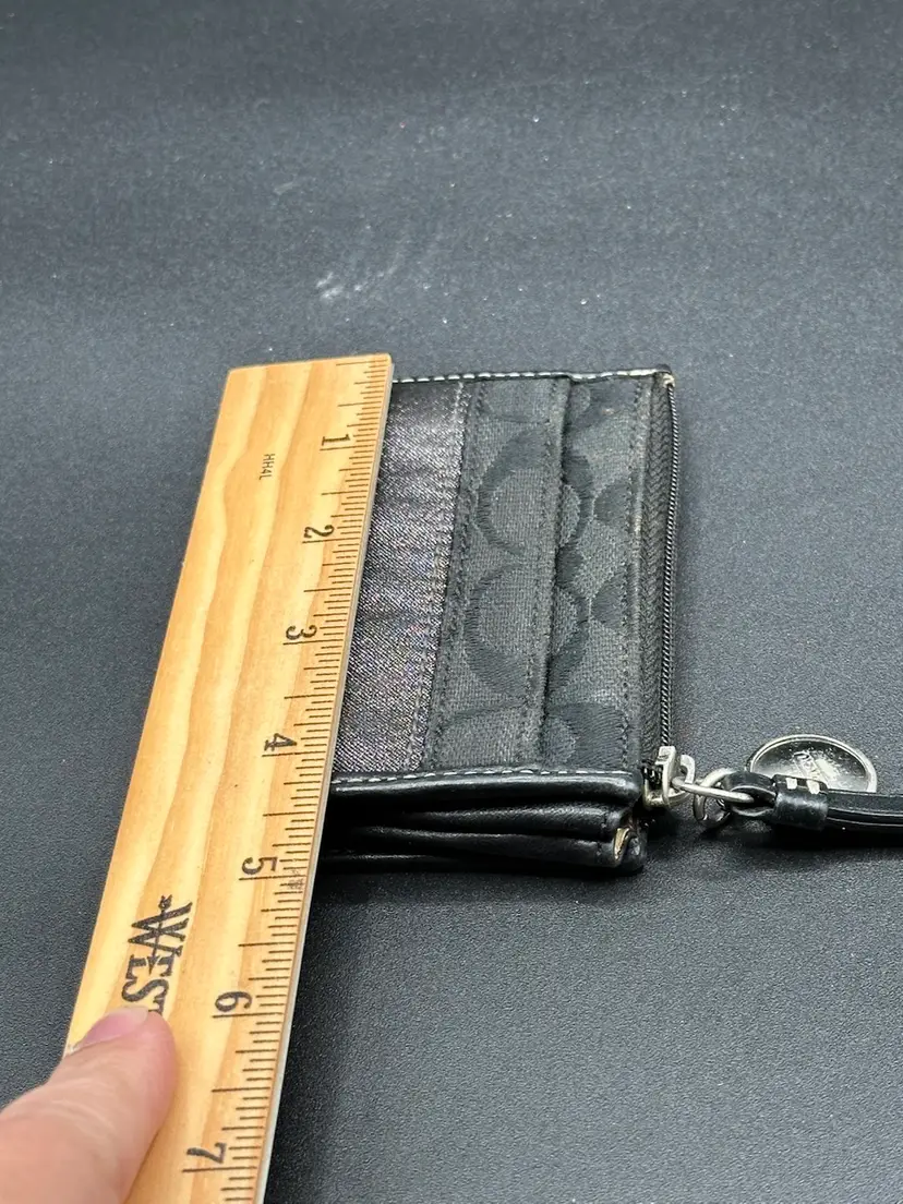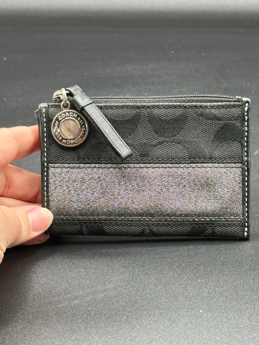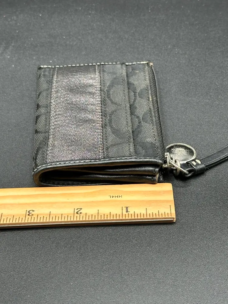 Coach Women Black Fabric/ Leather Trim Credit Card Wallet.
