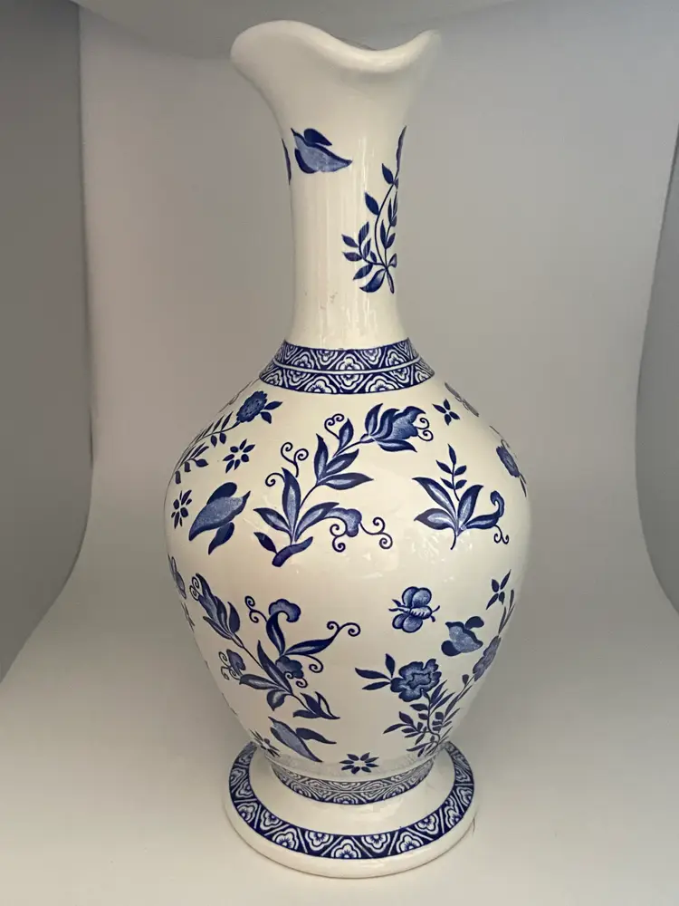 The Coalport Belfort Vase is a limited edition collectible measuring 9.5" tall, featuring a floral pattern in blue and white porcelain. Made in the United Kingdom, this vase is perfect for all occasions and adds a touch of elegance to any space with its medium size and exquisite design. The brand's reputation for quality craftsmanship and intricate detailing make this piece a valuable addition to any collector's display.