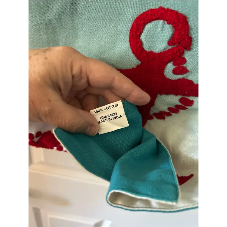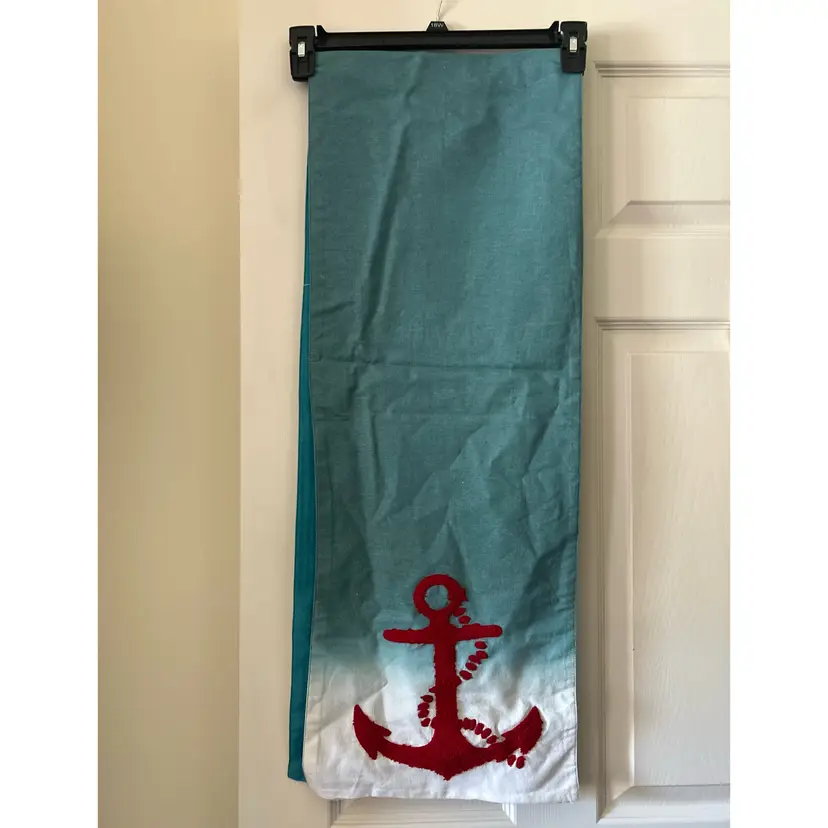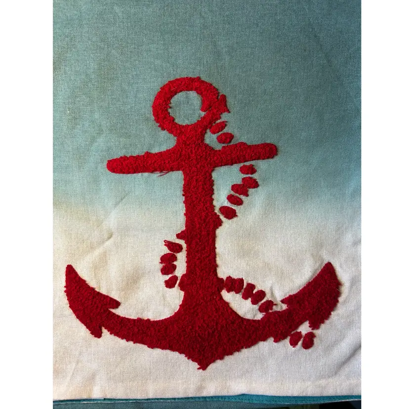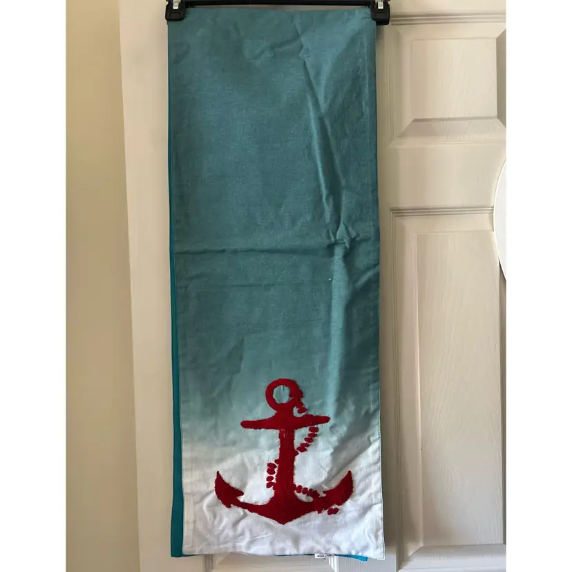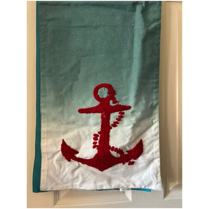 Nice Table Runner, linen fabric with backing, Red Anchor on blue to white ombre background. Nautical Decor for beach house cottage. Very good condition - only needs to be pressed. 12.75W x 70”L