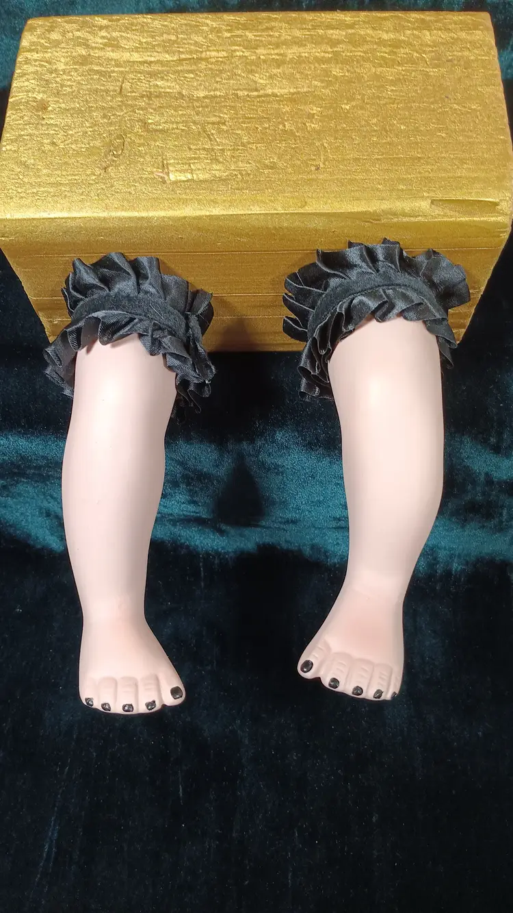 Set of 2 porcelain baby doll legs/feet have been upcycled into coat hooks, or hangers for holding your necklaces, bracelets, scarves, belts, garments, hats, keychains. The porcelain has been filled with cement. Hardware has been affixed with E6000 glue. Just slide onto a nail or screw (hanging hardware not included). Has been weight tested for 5-7 pounds. Not recommended to hang your heavy purse.
