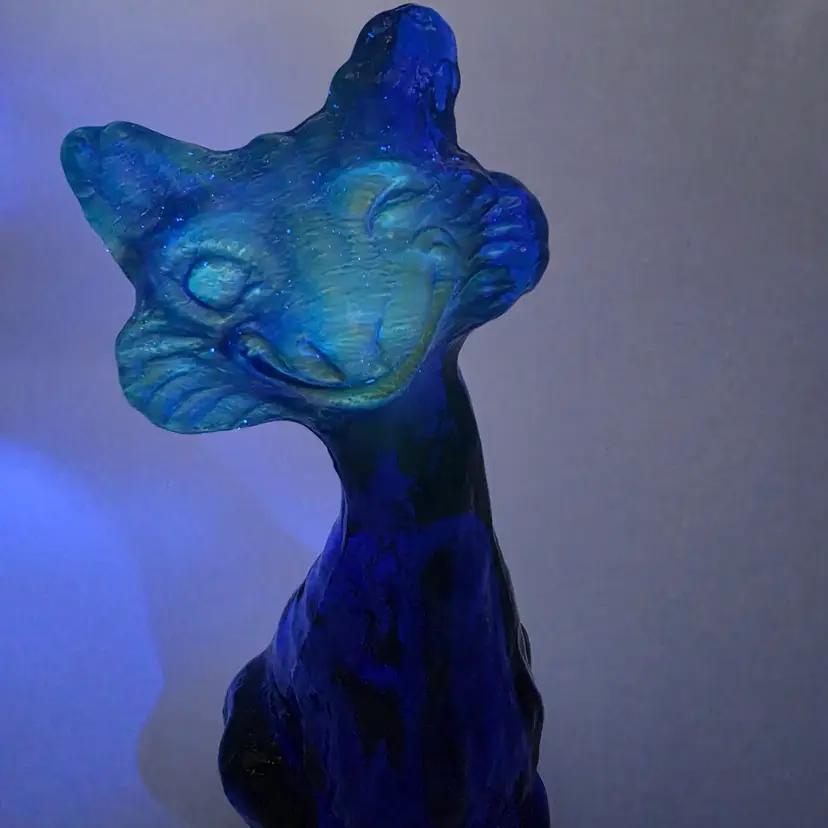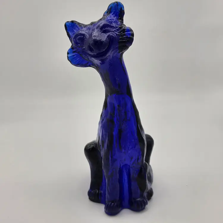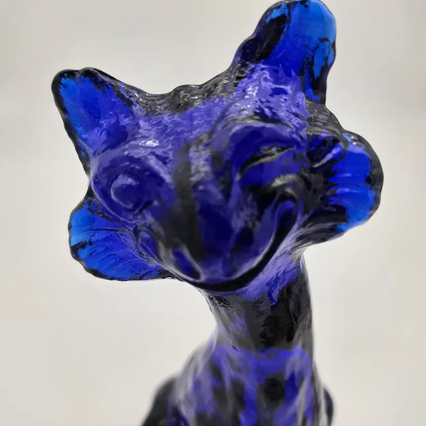 The design dates back to 1924, when it was originally introduced as "Sassy Susie" by the U.S. Glass Company. In 1970, the Fenton Art Glass Company acquired the original mold, transforming the feline into a beloved staple of their collection for decades. Following the closure of Fenton’s main factory, Mosser Glass took up the mantle, continuing the legacy by producing these figurines using the authentic Fenton molds.