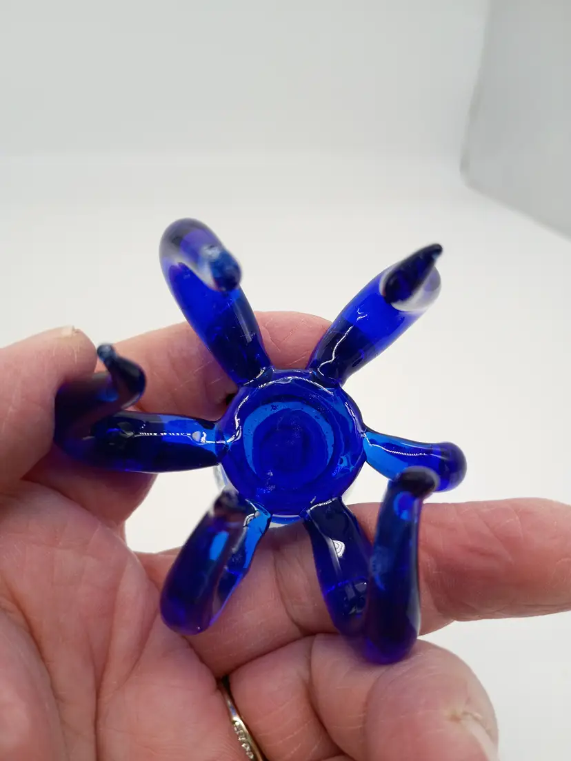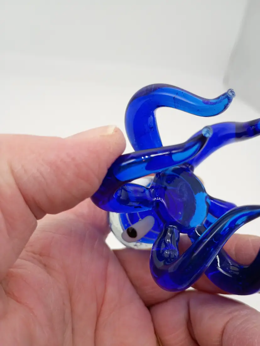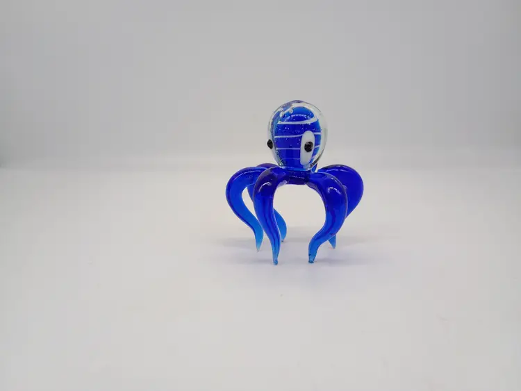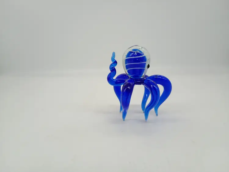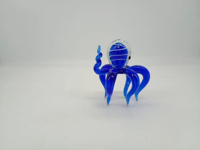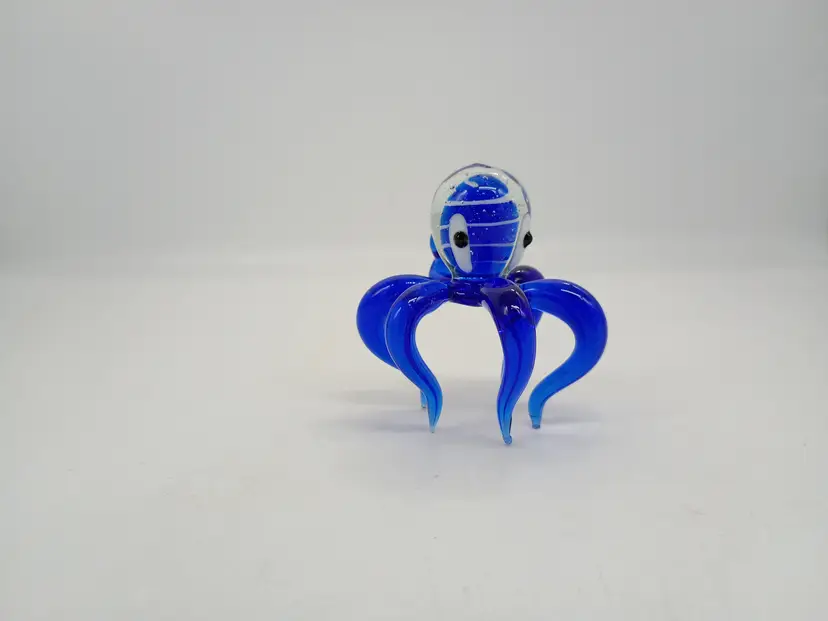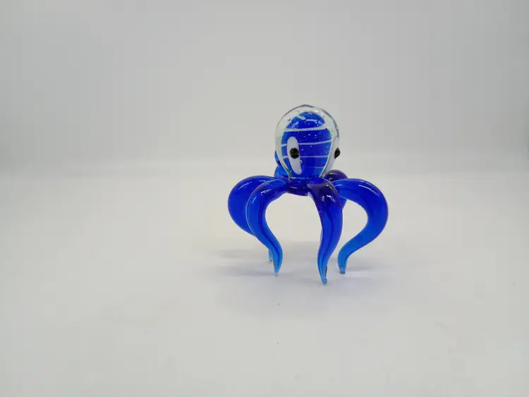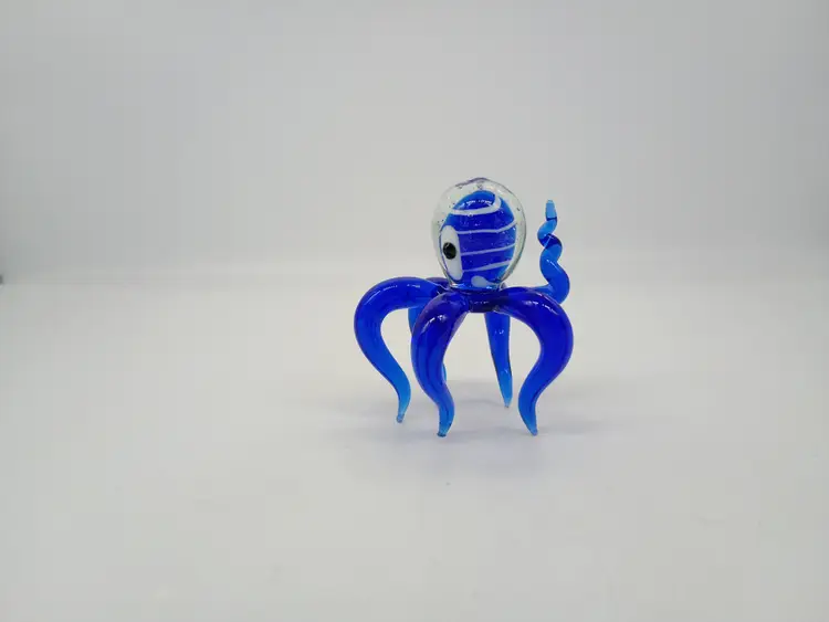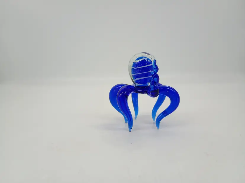 Cobalt Blue Art Glass Octopus Figurine White Swirls Hand Blown Glass Signed. This is 2.5 inches tall and 2.25 inches in diameter roughly. This is preowned. No chips cracks or flea bites. There is a marking on bottom looks like an S. Excellent condition. Ships USPS domestically and UPS internationally