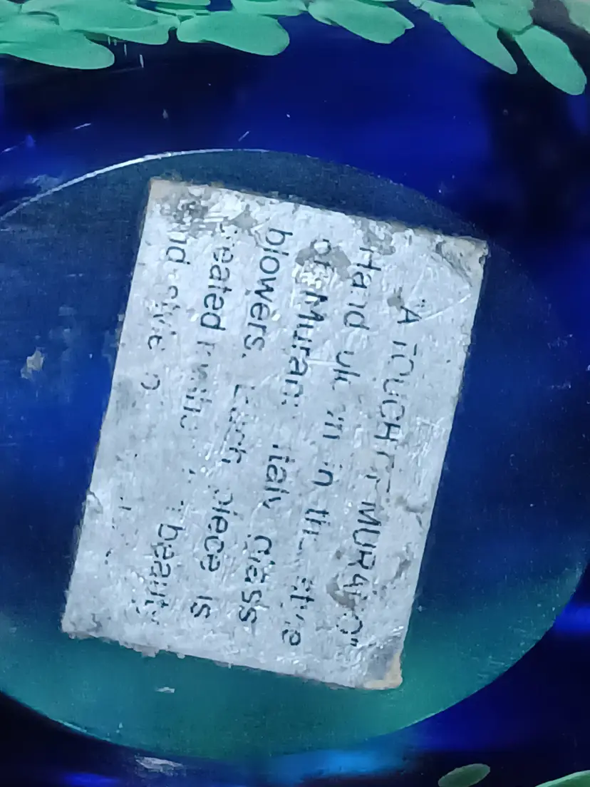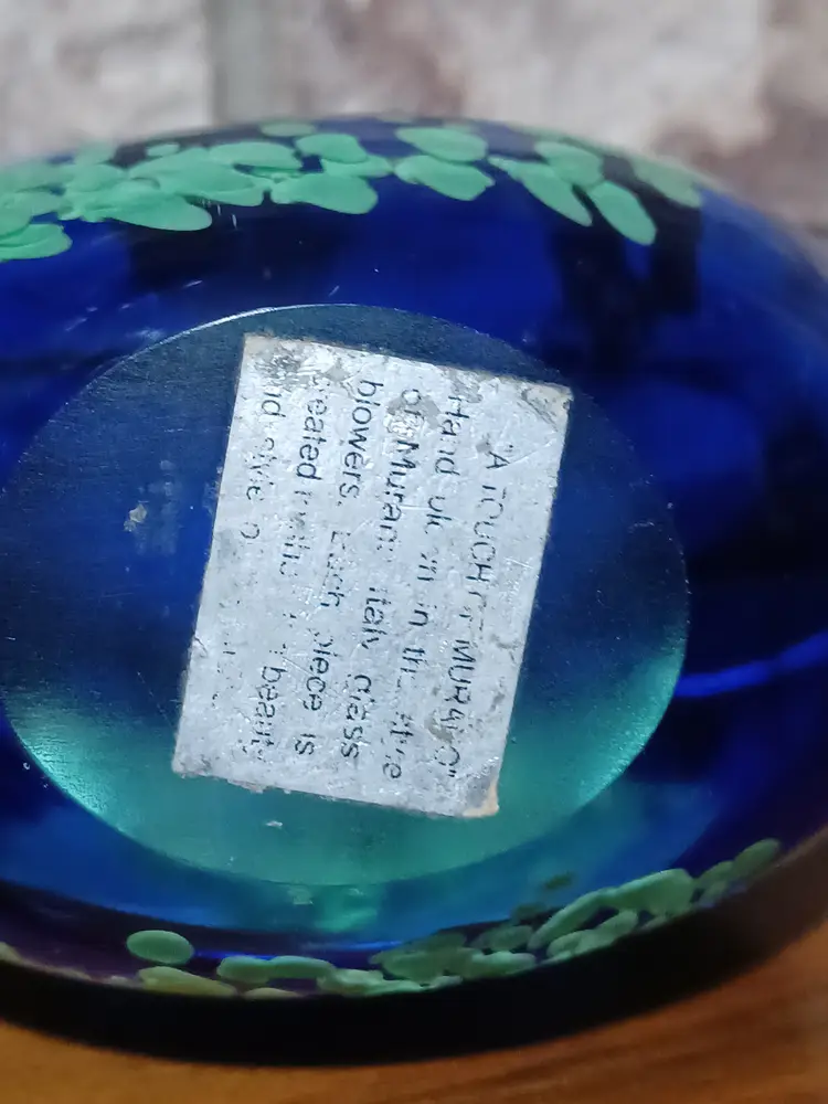 Origin label: “A Touch of Murano” (faded but partially readable)
